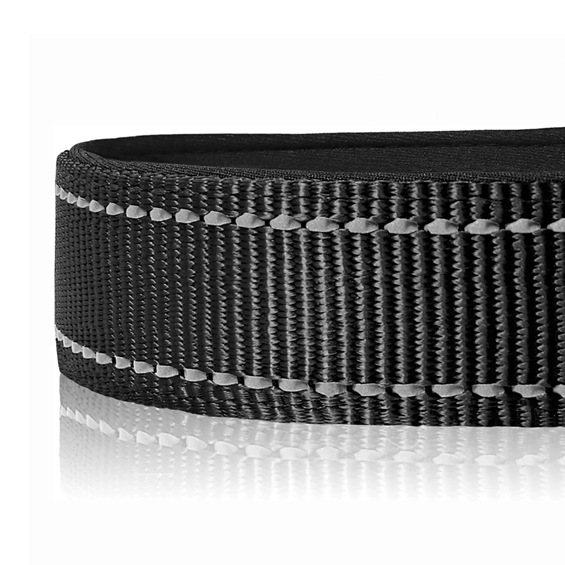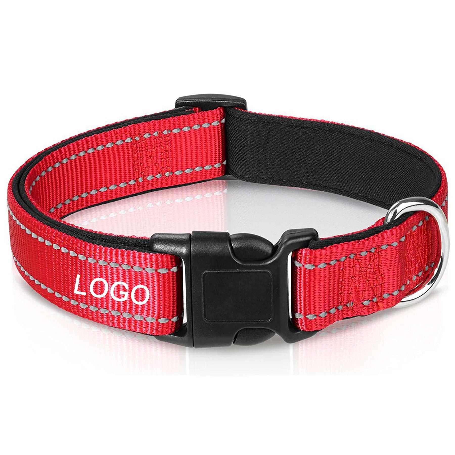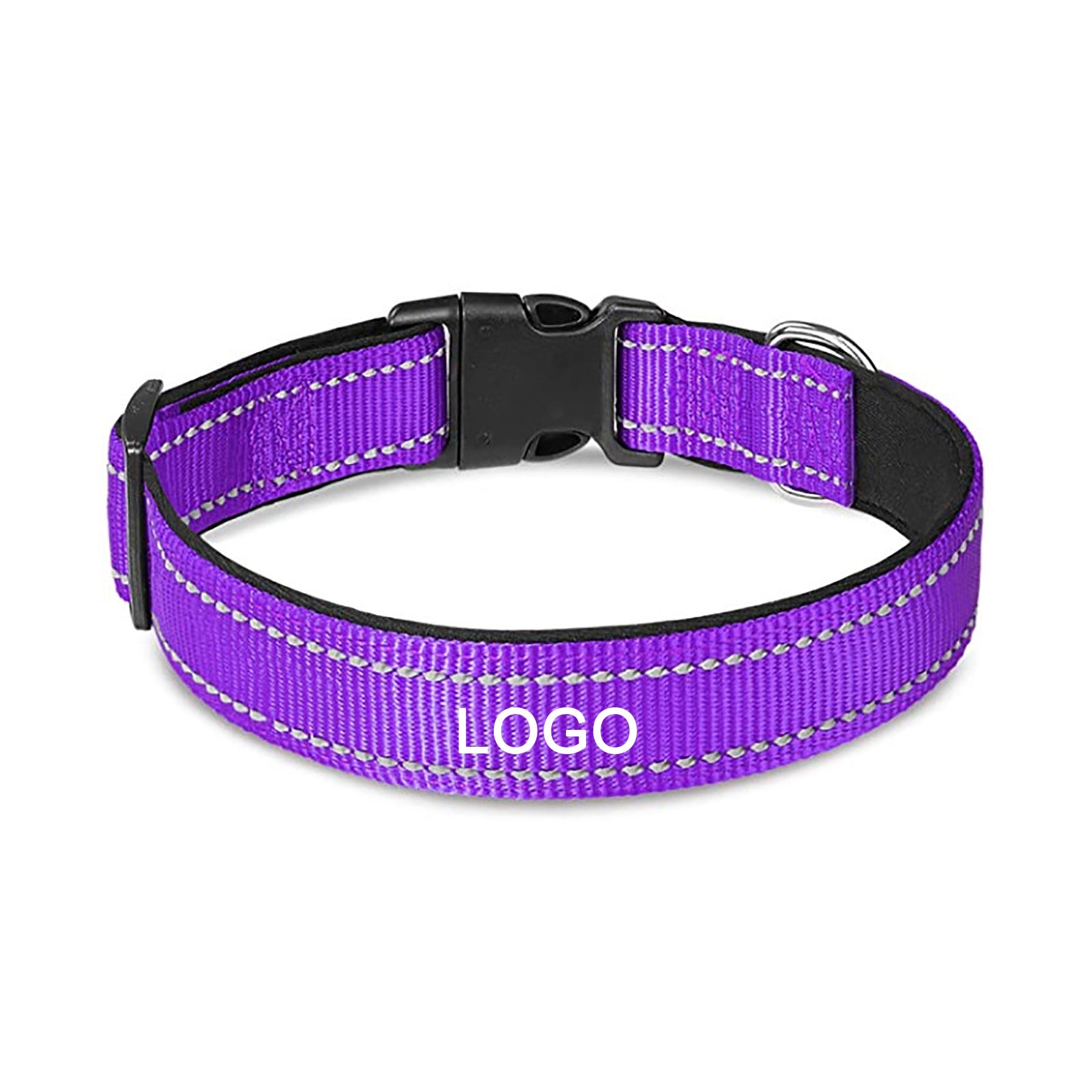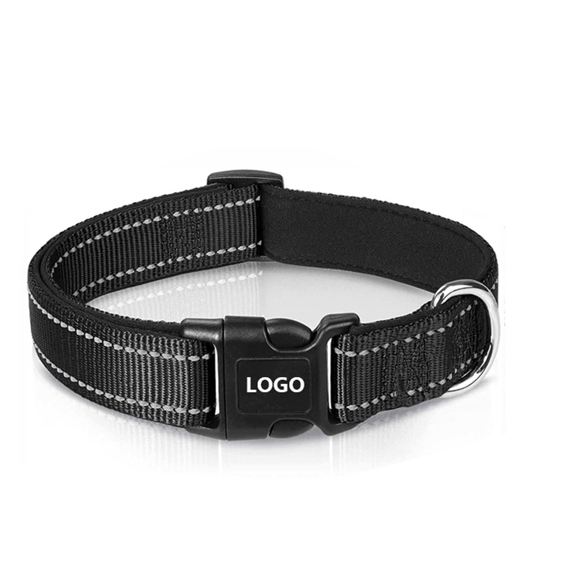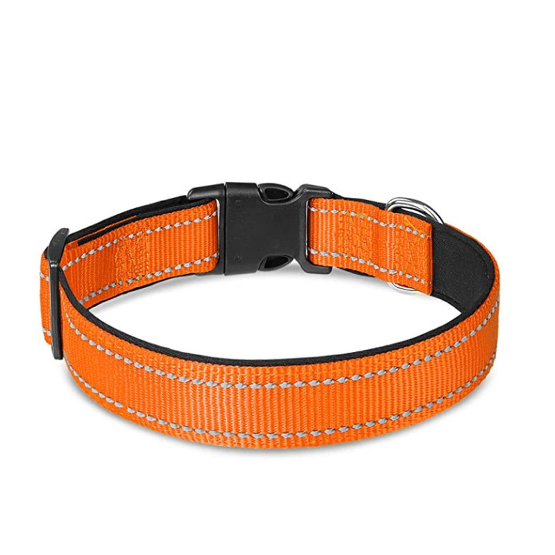 The dog collar is made of durable nylon with padded neoprene rubber for comfort. It dries quickly, is flexible, and ultra-soft. A separate loop allows for easy attachment of tags and leashes. Highly reflective threads ensure visibility at night. Quick-release plastic buckle for easy adjustment and comfort. 1″ L