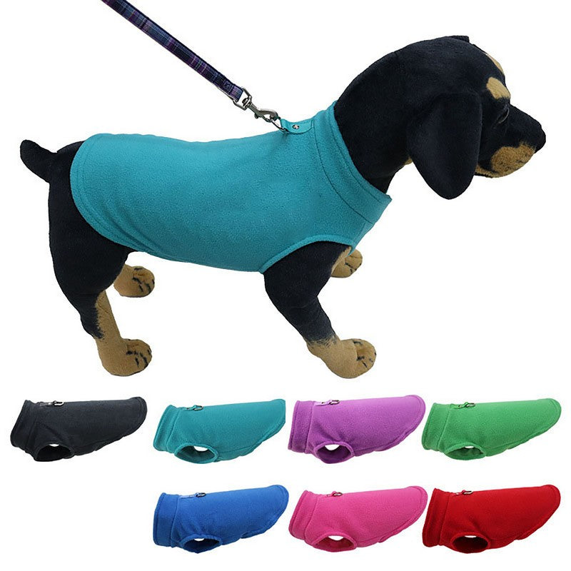 This solid-colored fleece pet coat is designed with extra thickness, suited for small to medium dogs. Selection is based on chest size to ensure a proper fit. The soft, padded inner lining provides warmth and comfort, while extended belly coverage helps shield against outdoor conditions. Lightweight construction supports ease of movement. Ideal for daily walks, evening runs, hiking, hunting, and various outdoor activities. 11.81′ L x 5.02′ W