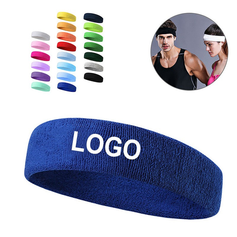 This headband absorbs sweat, wicks moisture, and dries quickly, keeping you focused on sports. Made of comfortable polyester, cotton, and spandex, it is non-slip and lightweight. Perfect for basketball, tennis, yoga, running, gym workouts, and outdoor activities. Custom logo options available. 7 1/8′ L x 2′ W