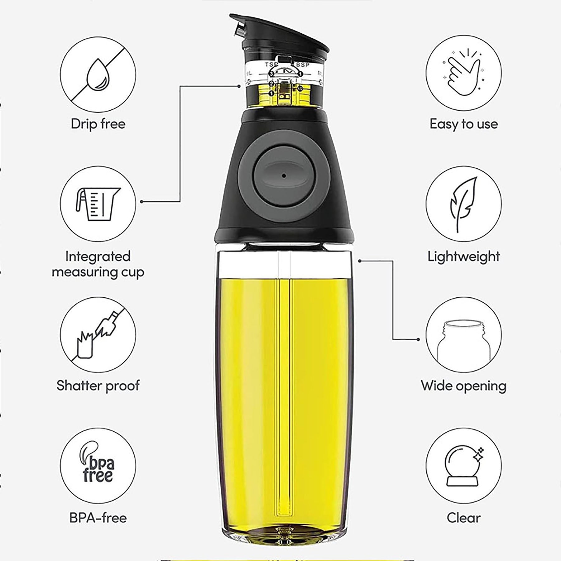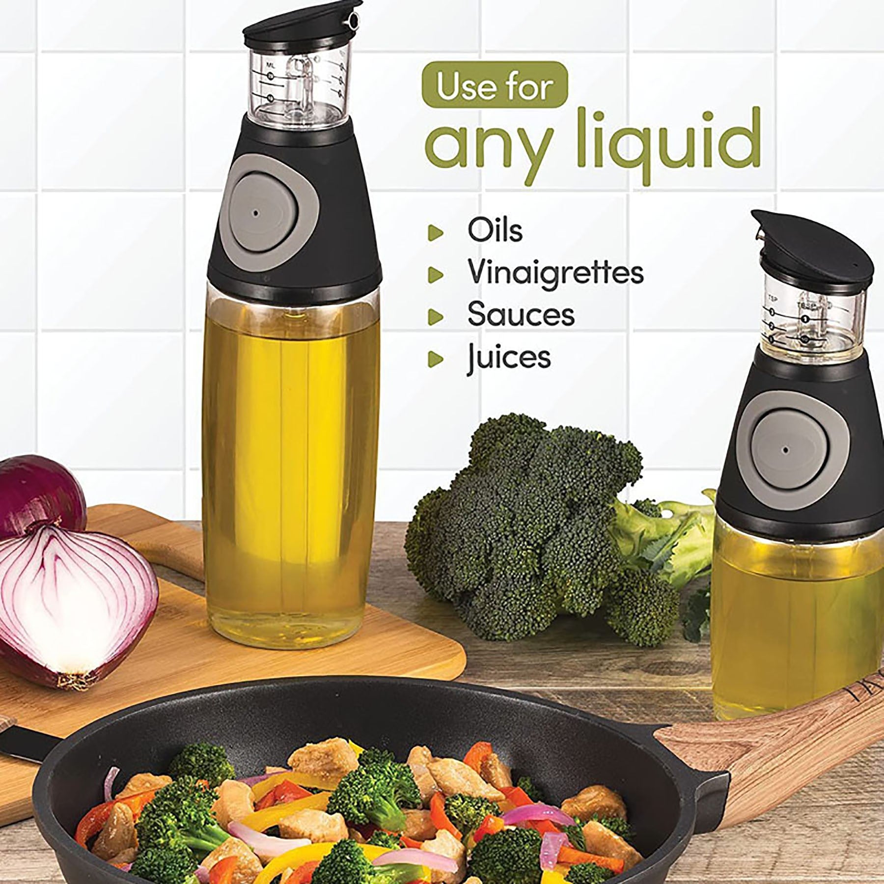 Tired of dealing with family members who always pour too much oil or sauce when they cook Say goodbye to kitchen disasters with our glass oil bottle. This innovative oil dispenser allows you to press, measure, and pour with ease. It’s a lifesaver when following new recipes that require precise measurements. Plus, you’ll never consume unnecessary extra calories again. Our non-drip design ensures that your bottle and kitchen stay clean. Upgrade your cooking experience today with our convenient and practical oil dispenser. 1″ L