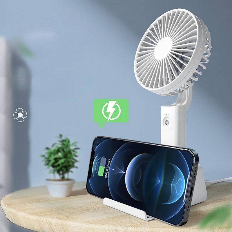 You can adjust the airflow to match your different needs, and it’s quiet enough to use while sleeping at night, keeping you cool and comfortable without stuffiness throughout the night. Equipped with a detachable stand base, the fan supports switching between handheld and desktop modes—place it on the base to turn it into a standard desktop fan, and the base can also double as a phone holder. When your hands feel tired, you can set the fan down on the base and use the holder to watch videos, simplifying daily life.This handheld portable fan can keep running while connected to a power source, delivering reliable cooling support for you in any environment and meeting your cooling needs anytime, anywhere. It’s compact and easy to carry and store, making it perfect for summer travel or as a thoughtful gift for friends. The fan is well-suited for both indoor and outdoor use, and is an ideal companion for travel and outdoor activities. 4.33″ L x 4.33″ W x 4.33″ H
