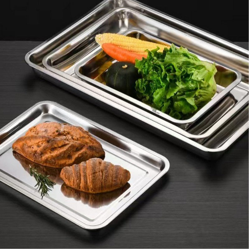 The surface of the roasting pan is superbly mirror polished for durability and won’t warp after years of use. Oven baking pan is rimmed on all four sides to ensure food juices don’t spill and keep your oven tidy. Great for baking cookies, cinnamon rolls, sticky buns, brownies, cornbread and fruit tarts, etc., food can be presented perfectly. Great for home baking, ideal oven tray for bakeries, buffets, birthday parties, food festivals, family gatherings or other parties. 10.63′ L x 7.87′ W x 7.87′ H