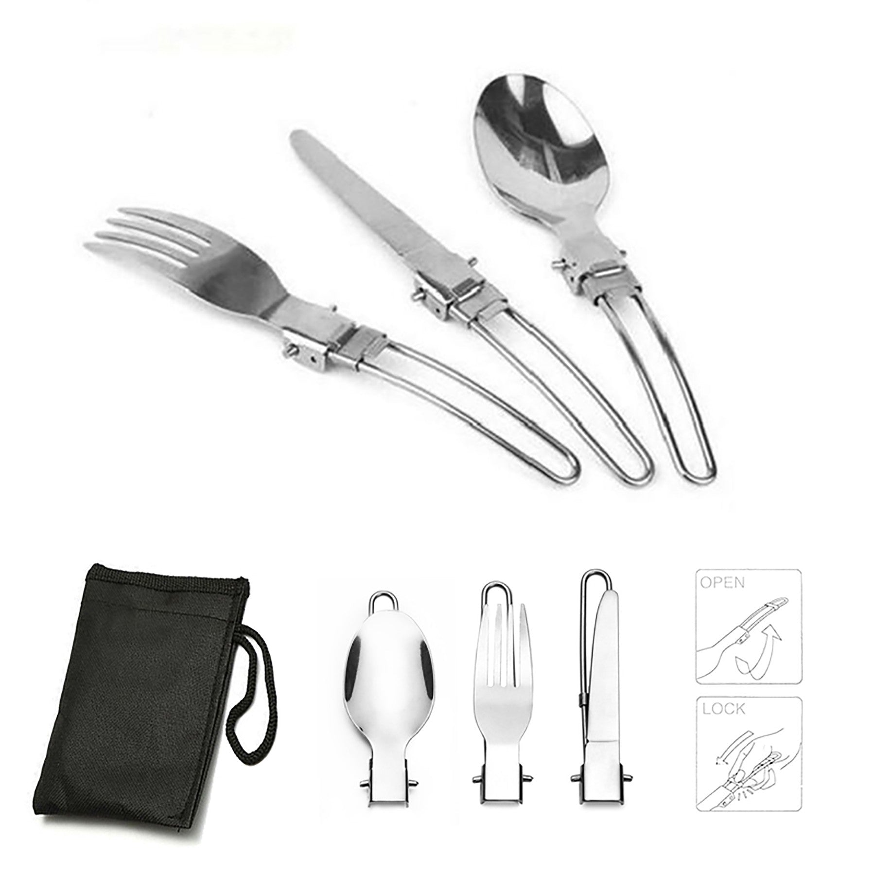 Stainless Steel 3 Piece Folding Camping Picnic Set