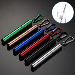 Introducing our compact collapsible straws with a carabiner for easy attachment. Say goodbye to single-use plastic with our reusable solution. Each straw comes with a telescopic cleaning brush and is dishwasher safe. Choose from vibrant colors that won’t fade. Make the switch to our eco-friendly straws for guiltless sipping on the go. 4.92″ L x 0.67″ W
