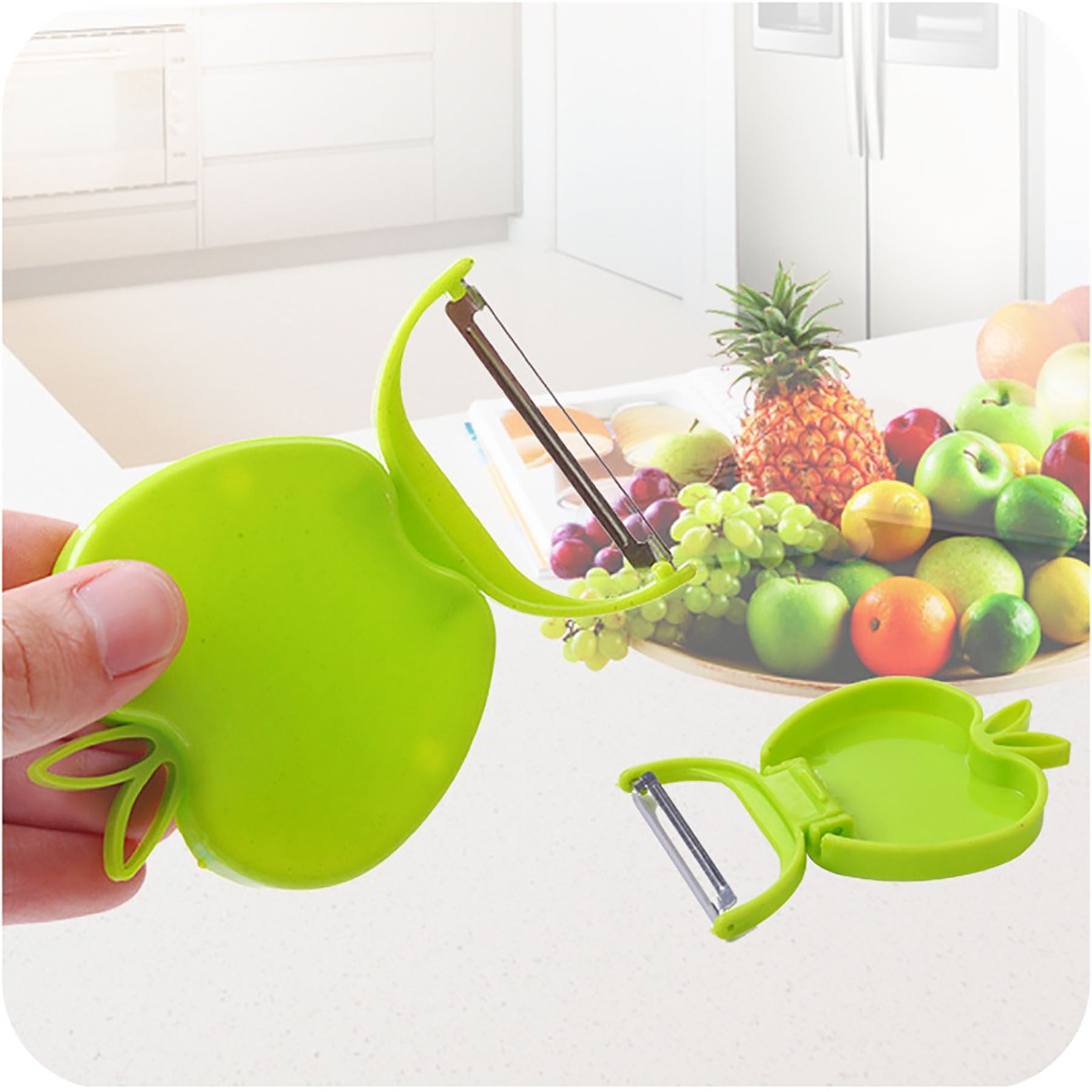 Introducing the innovative foldable peeler, crafted from durable plastic and stainless steel, cleverly shaped like a sleek apple. This versatile kitchen essential is designed for everyday use, making meal prep a breeze. Featuring a spacious printable surface, it offers a prime opportunity for showcasing your brand and gaining maximum exposure. Elevate your kitchen experience with this stylish and practical tool. 2 1/2″ L x 2 1/2″ W x 1/2″ H