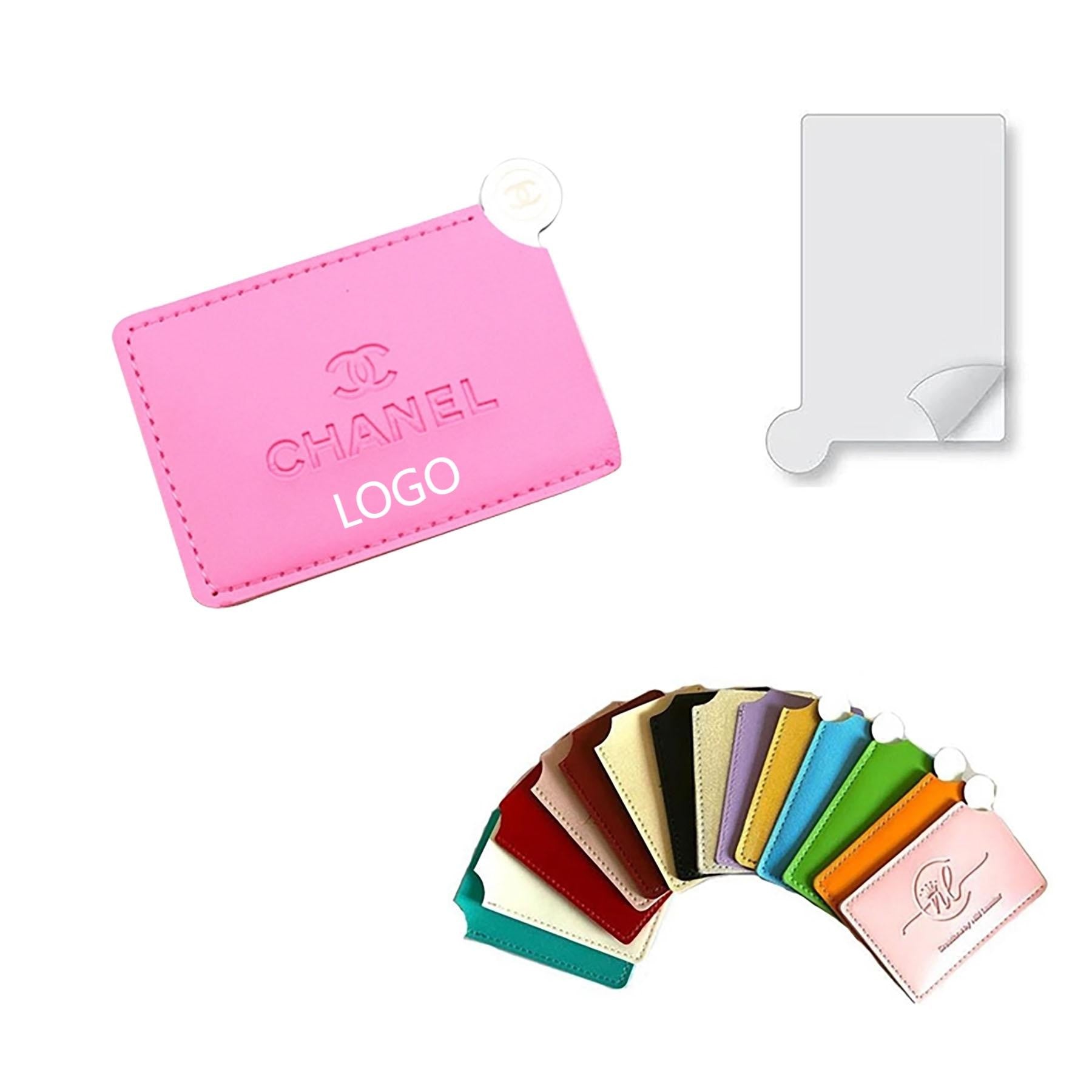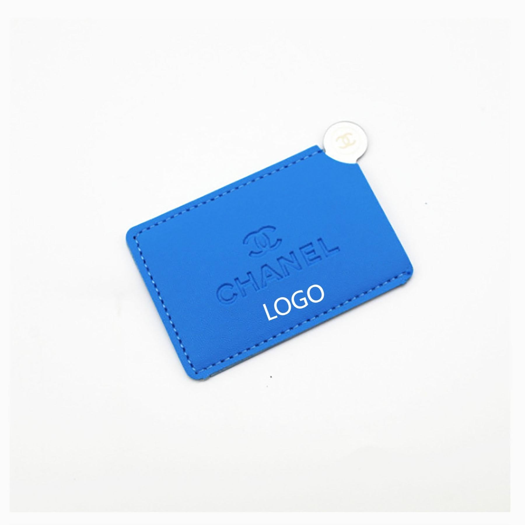 Introducing our premium unbreakable mirror made of high-quality stainless steel for durability. It has a sleek design with a round handle for portability and comes in a luxurious PU leather case for protection. Custom logos can be added for a sophisticated promotional giveaway. This credit card-sized mirror is stylish, practical, and perfect for personal use or as a gift. Elevate your brand with our exquisite mirror. 3 3/8″ L x 2 1/8″ W