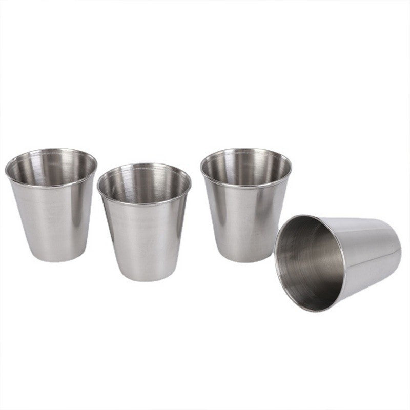 Our cups are made with high-quality rust-304 (18/8) stainless steel, a safe and solid material that eliminates plastic toxins and breakage concerns. Unlike fragile glass, these unbreakable metal cups are ideal for both kids and adults prone to dropping their drinkware. They are durable, lasting longer than plastic or glass, and are lightweight, easy to clean, stackable, and eco-friendly. Dishwasher safe for convenience. 3.5′ L x 3.5′ W x 3.5′ H