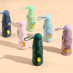 The portable outdoor umbrella is lightweight and easy to carry with a quick-folding buckle strap. It folds to the size of a cell phone and can be stored in a capsule case, providing stylish protection from the sun and rain with UV protection and a steel-reinforced construction. The compact design features a traditional 6-bone fiber frame for greater protection, making it perfect for outdoor use. The waterproof umbrella dries quickly with moisture-wicking material. 37.01′ L x 37.01′ W x 37.01′ H
