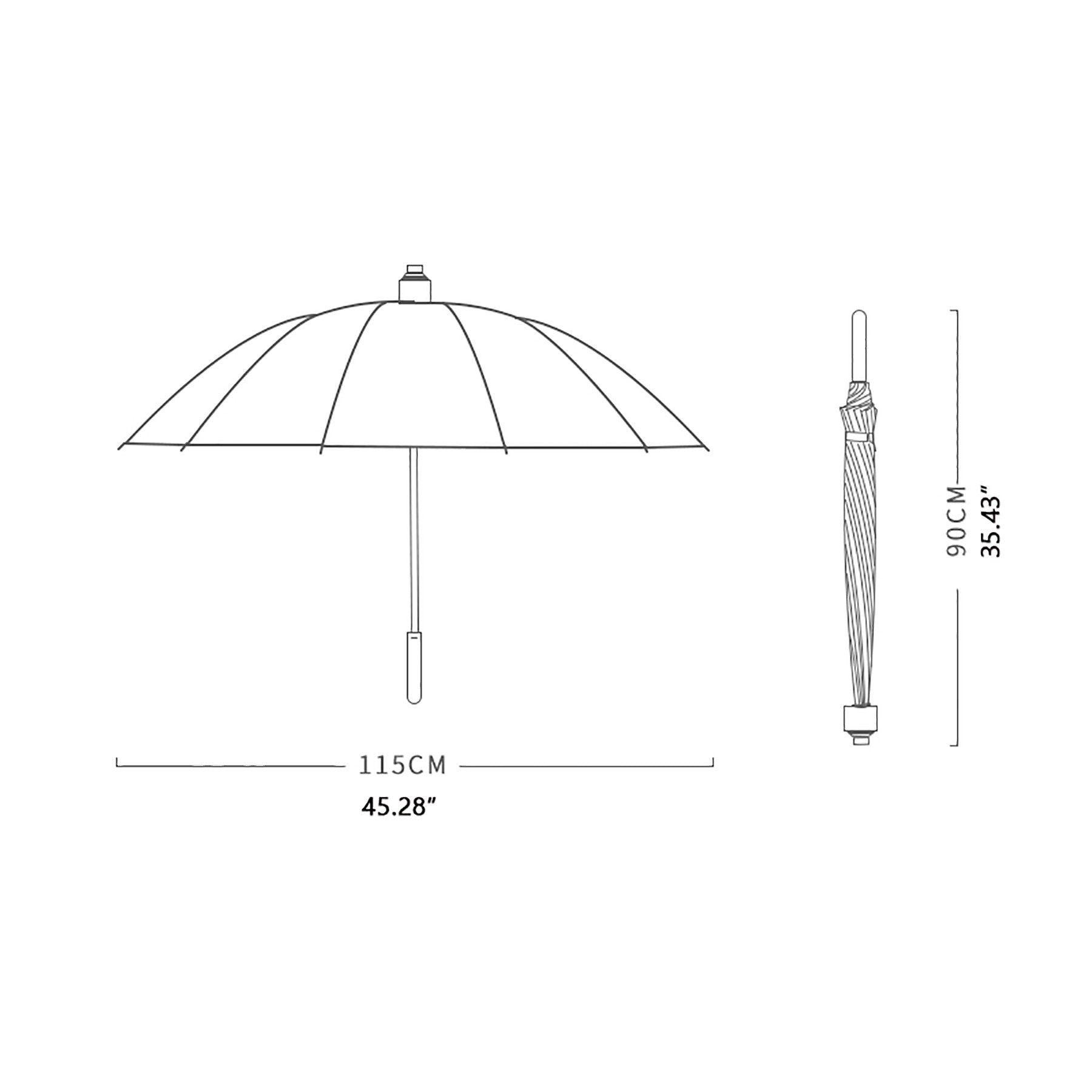 The UV blocking umbrella has a black rubberized inner layer that reflects most UV rays, while the black coating on the canopy absorbs the rest, providing UPF 50+ protection. Stay cool and sunburn-on hot days! The waterproof coating keeps you dry in the rain. Comes with a stylish waterproof case, making it easy to store and carry. Ideal gift for anyone. 35.43′ L x 35.43′ W x 35.43′ H