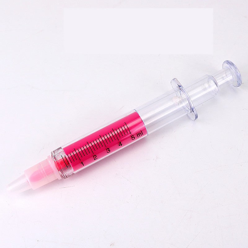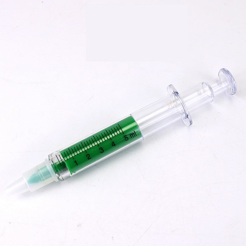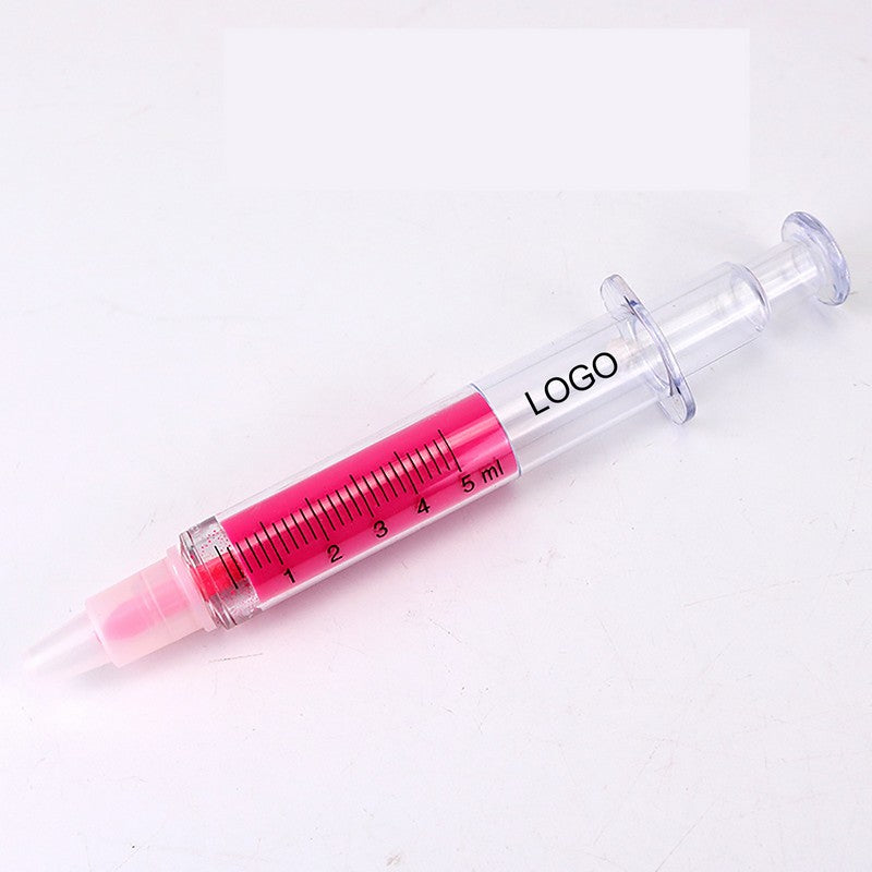 Elevate your note-taking with this unique syringe that contains a ballpoint pen and highlighter. Customize it with your logo for a personal touch. Ideal for students, professionals, and anyone wanting to stay organized at school, work, or home. 5.7′ L x 0.8′ W