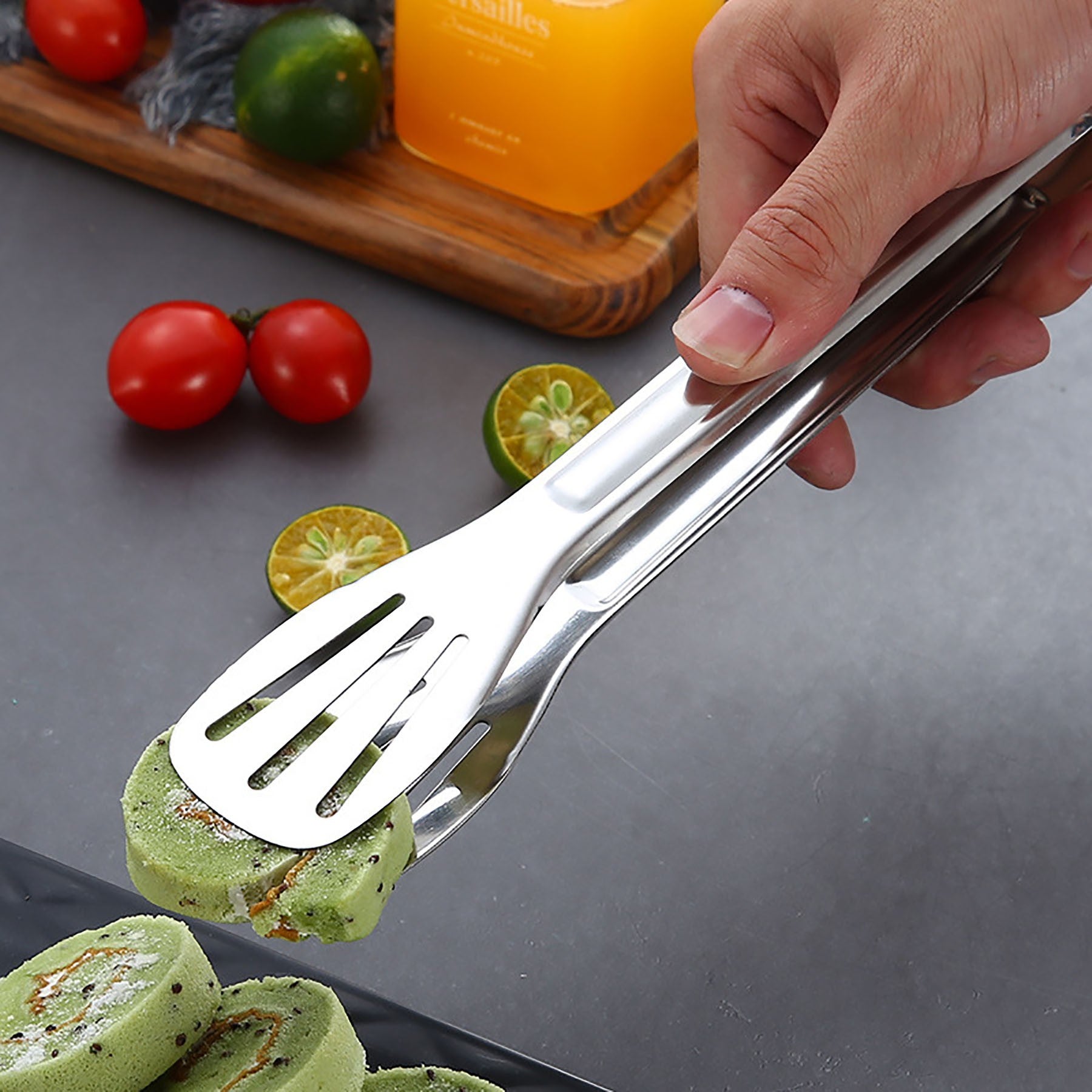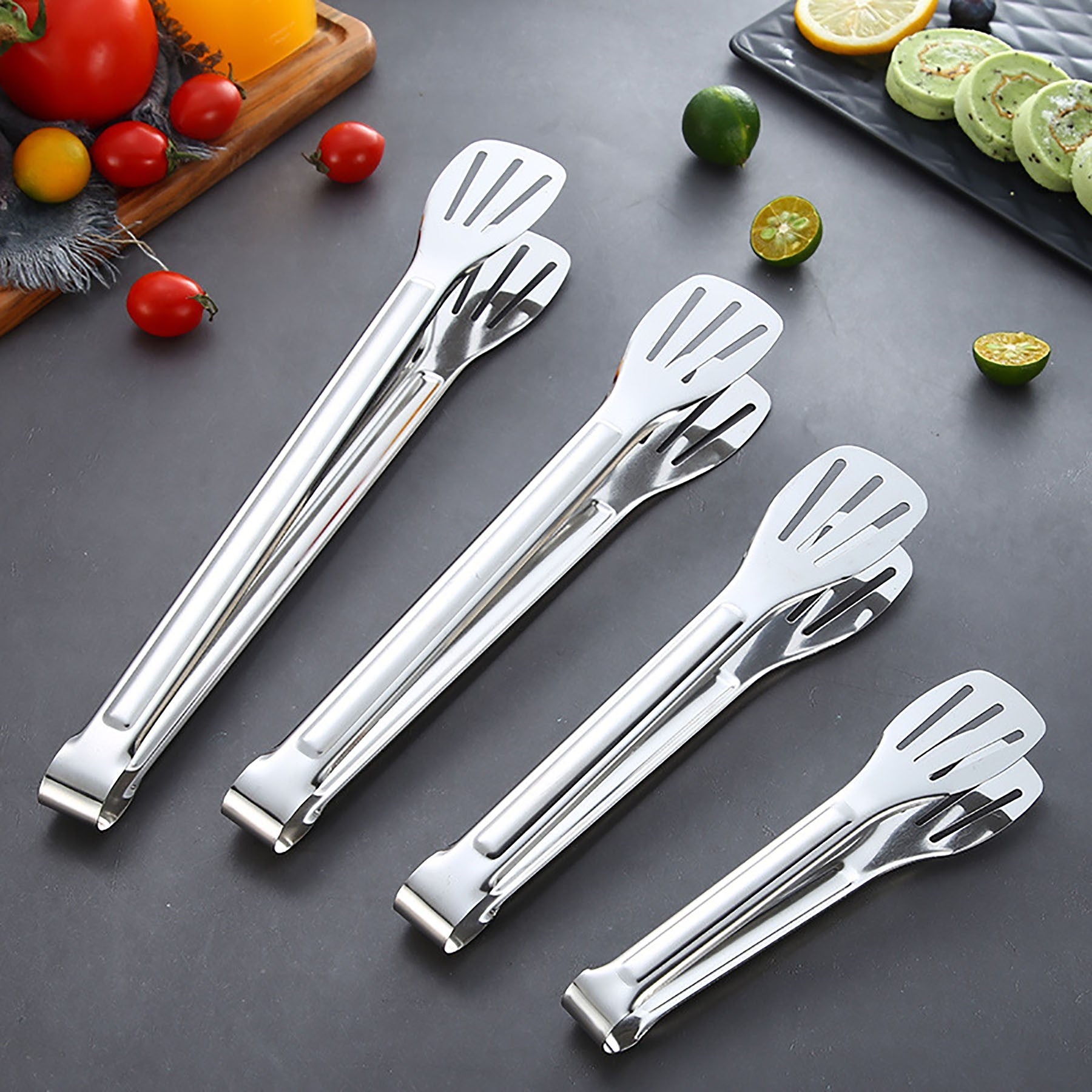 Made from high-quality stainless steel, these kitchen tongs have a unique design with three lines for easy draining. The smooth handle offers a comfortable grip to protect your hands. These versatile tongs are perfect for sandwiches, steaks, salads, picnics, and barbecues. Elevate your cooking with these stylish and functional tongs. 11.12″ L x 1.76″ W