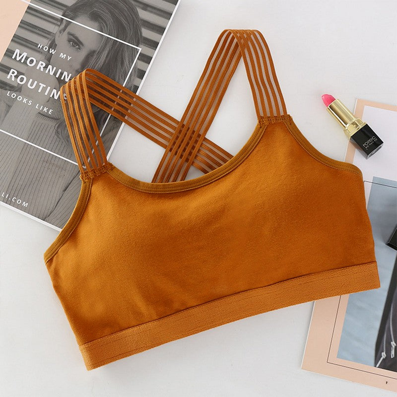Breathable cotton bras in one size (A/B cup) for women under 132 lbs. Medium impact sports bra with quick-dry fabric and moisture-wicking technology. Crisscross athletic style with strappy back for perfect shape. Pair with high waist leggings, workout pants, or high waisted jeans for a beautiful look. 1″ L