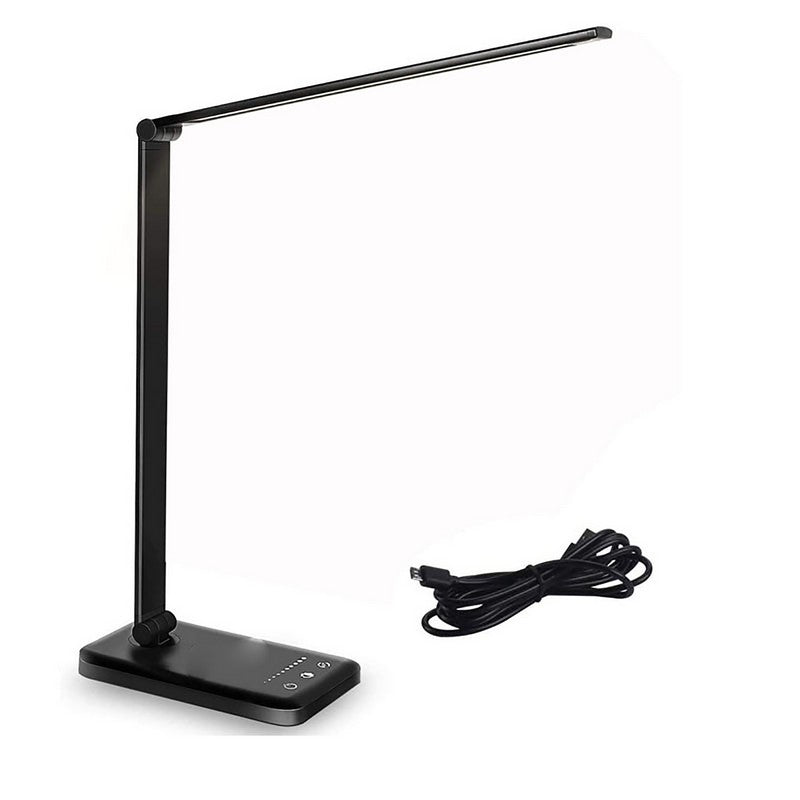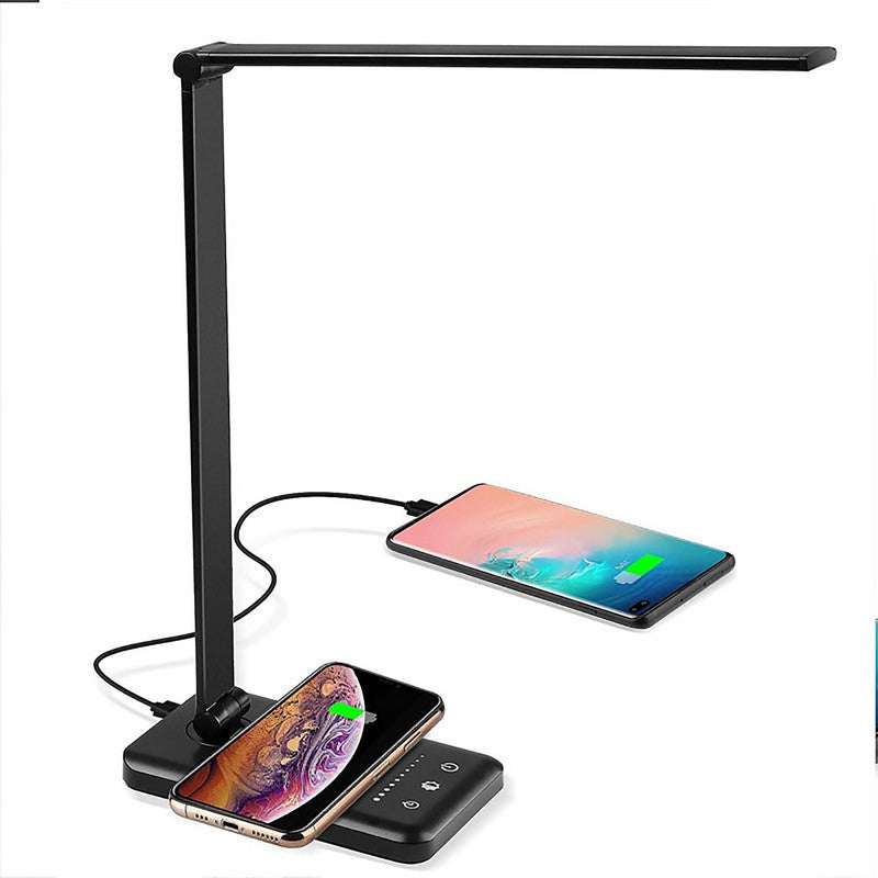 Multifunctional LED Desk Lamp, Office Lamp,with 5V2A Adapter to wall, Portable.25 brightess choices:5 lighting modes x 5 level brightness , Sensitive Touch Control.Powerfull charging:owning both USB Charging Port and Fast Wireless Charger(needs 5V/2A adapter,already Included )drift off without a care:30/60 minutes Auto off timer, drift off without a care,no need to worry about turning off.Eye-caring Tech: No flicker lighting, desk lamp suitable for kid night bedroom reading. 14 1/8′ L x 7 4/8′ W