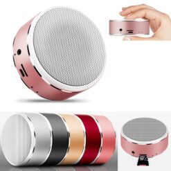Experience ultimate portable sound with our wireless speaker! It has a 660mAh lithium battery, compatibility with phones, laptops, tablets, TF cards (up to 16GB), and FM radio. Enjoy crystal-clear stereo sound with powerful bass, crisp highs, and wireless calling with echo cancellation. With up to 8 hours of playtime and a 10-meter wireless range, you can take your music anywhere. Specifications: DC 5V/0.8A power input, 2W output, 90dB signal-to-noise ratio, and 80Hz-20kHz frequency response. Upgrade your audio experience today! 1 7/8″ L x 1 7/8″ W x 2 1/4″ H