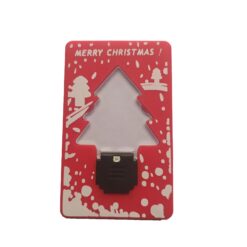 Introducing the Card Light: a credit card-sized bulb that fits in your wallet for easy access. Featuring a Christmas tree-shaped LED bulb for bright illumination in the dark, it turns on when folded up and off when folded down. A convenient and versatile tool for on-the-go illumination. 3.4″ L x 2.09″ W x 0.14″ H