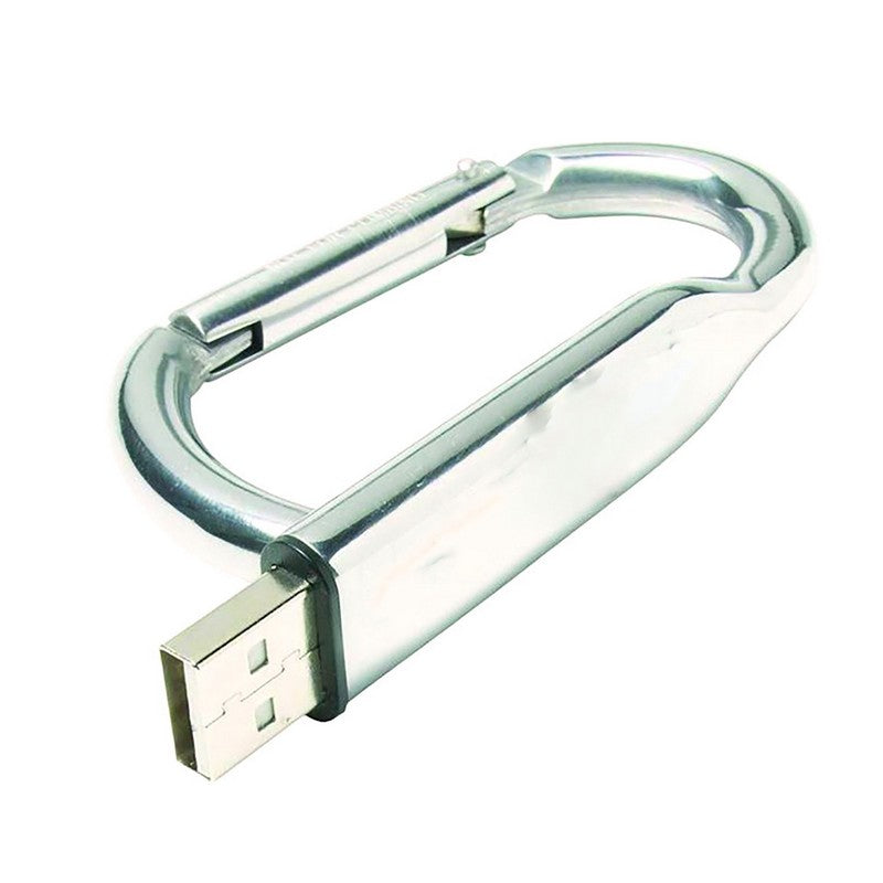 1GB Carabiner, Link, Hook style USB with silk screen print or laser; Hi-Speed USB 2.0 certified. Compatible with PC and Mac, 10 year data retention. Also known as jump drive, pen drive, keychain drive, thumb drive, flash disk, u-disk, and memory stick. Sizes: 16MB – 64GB. 3 7/8′ L x 1 3/4′ W x 1/16′ H