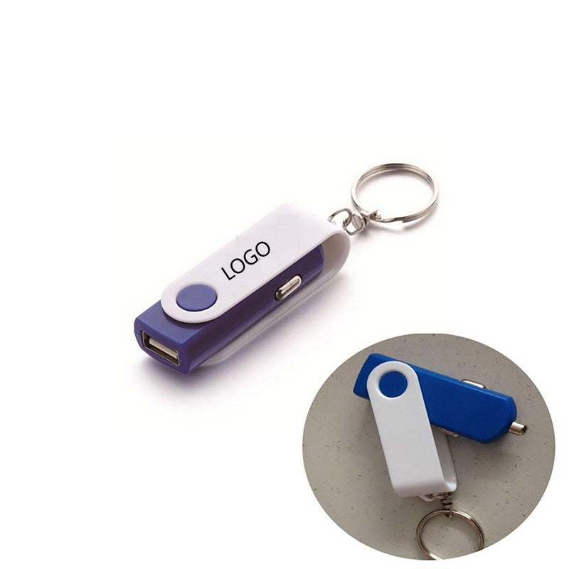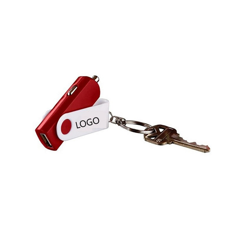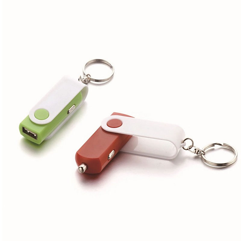 Keep your auto adaptor handy with this USB port key chain. (Input 12-24 volts and output of 5 volts/1Amp). 0.94′ L x 2.38′ W x 0.31′ H