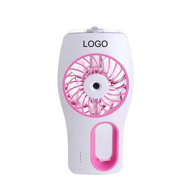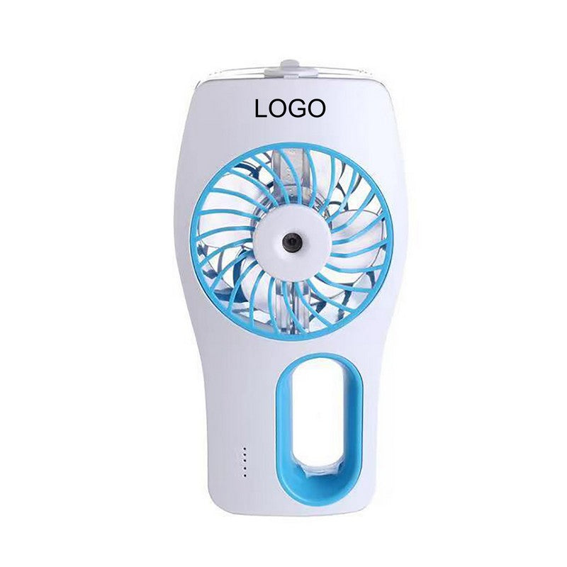 Portable 2-in-1 fan doubles as a USB mini cooling fan and beauty humidifier. Features 3-speed wind settings and 2 spray modes for personalized comfort. Perfect for staying refreshed on the go at work, home, or outdoors. Add your logo for a powerful marketing tool. Elevate your brand with our Handheld Portable Fan. 3 3/5′ L x 2 1/3′ W x 7 1/5′ H