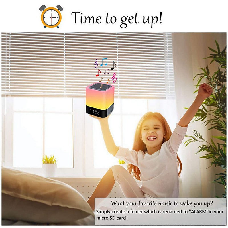 Experience the magic of our Colorful Night Lights, perfect for all ages. This bedside lamp features 48 color-changing LED lights controlled by touch. Adjust brightness to set the perfect ambiance and enjoy the immersive experience as the light changes color with volume and rhythm. Portable and ideal for relaxation, it also functions as a wireless speaker with high-power woofer and unique Bass technology. Connect wirelessly, play MP3s, or use an AUX connection for superior sound quality. Use it for audio books, cooking with music, or workouts. The possibilities are endless with our Colorful Night Lights. Make every moment magical with this versatile high-quality product. 3.9′ L x 3.9′ W x 4.4′ H