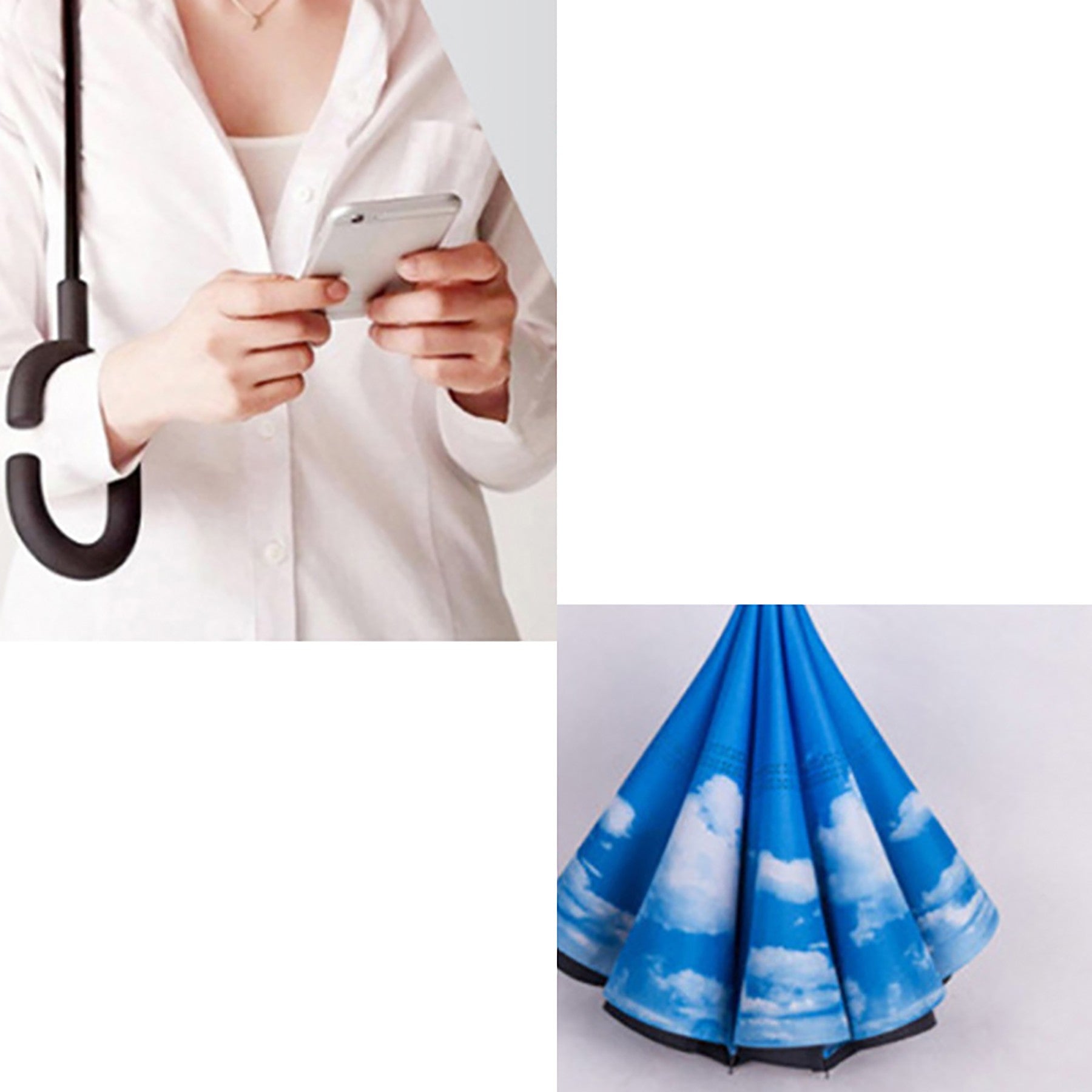 Made from lightweight and waterproof pongee fabric, this umbrella features a breathable double layer canopy and a sleek top. The high-quality stainless steel frame provides stability in strong winds. With a unique reverse folding design, it can be opened effortlessly while keeping you dry. The C-shaped handle allows for hands-use. Stay dry and stylish with this innovative umbrella. 41.3′ L x 29.5′ W