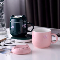 Experience luxury with our thermostatic cat cup, featuring cherry blossoms on high-quality ceramic. Enjoy your coffee at the perfect 55-degree temperature with its advanced technology. This elegant cup holds 320 ml and is ideal for women seeking style and sophistication at home or in the office. Elevate your coffee experience with this chic accessory. 3.93′ L x 3.54′ W x 3.54′ H