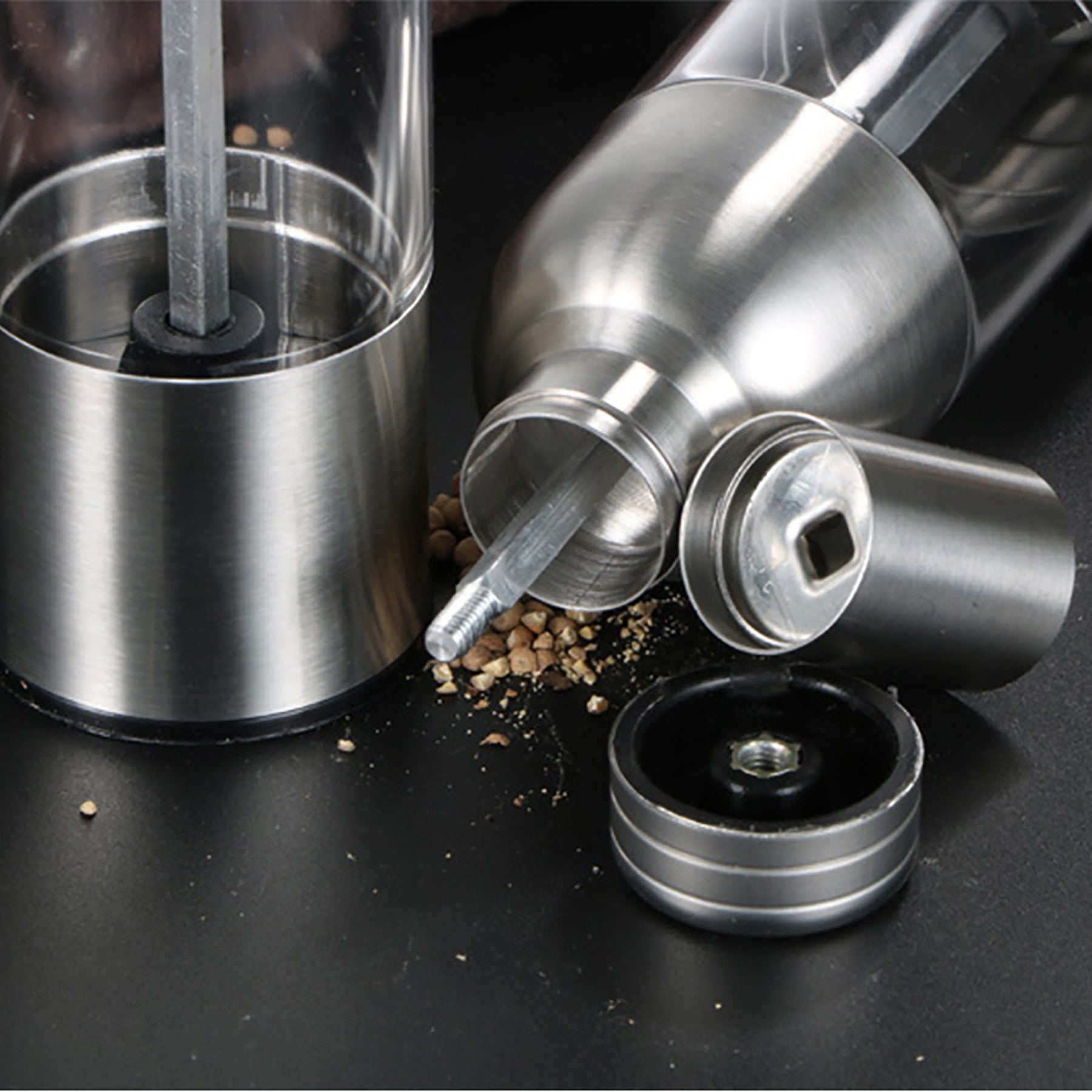 Upgrade your cooking with our stylish Salt and Pepper Mills. Crafted from durable stainless steel and non-BPA glass, these mills are both fashionable and practical. Ideal for seasoning gourmet dishes or wowing visitors, they also make excellent gifts that can be personalized to suit your taste. Take your cooking to the next level with our premium grinders. 1.89″ L x 1.89″ W x 7.09″ H