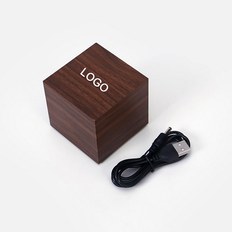 This LED display wooden clock is perfect for any desk. It displays the time, calendar, alarm, and temperature. You can save up to 3 different alarms. You will need three AAA batteries or a USB charge included. Screen imprint your brand logo on the top. It could be an ideal item for the next promotional event. 2.36′ L x 2.36′ W x 2.36′ H