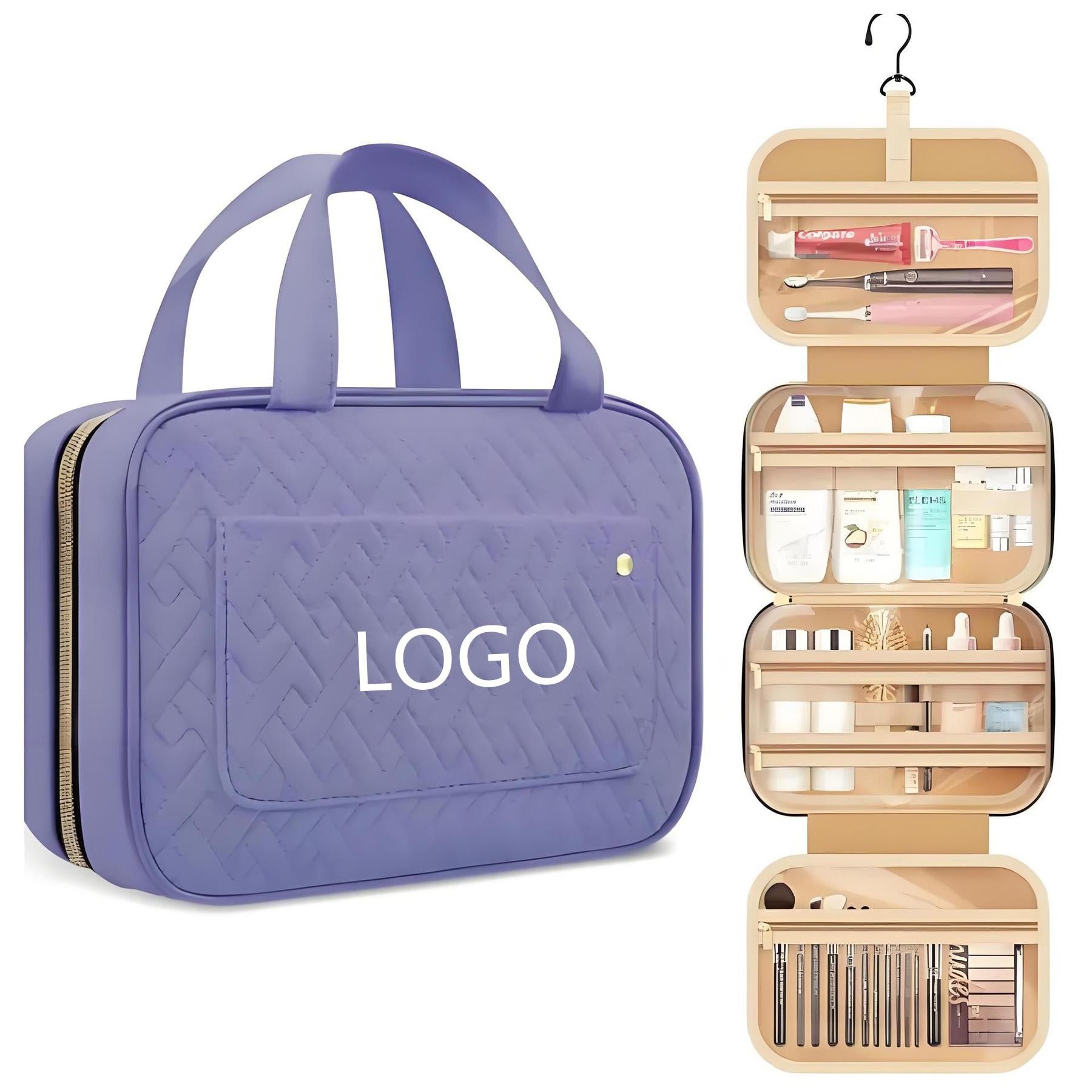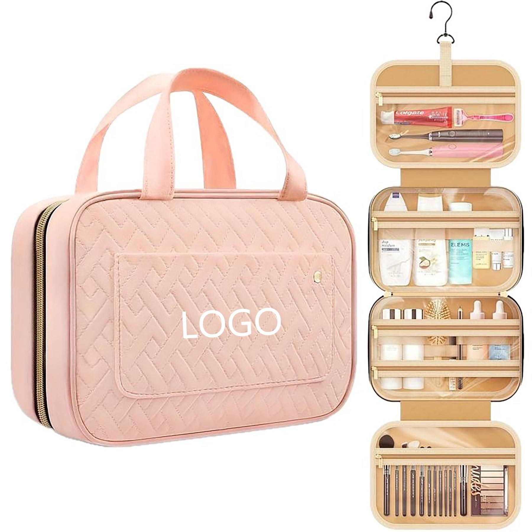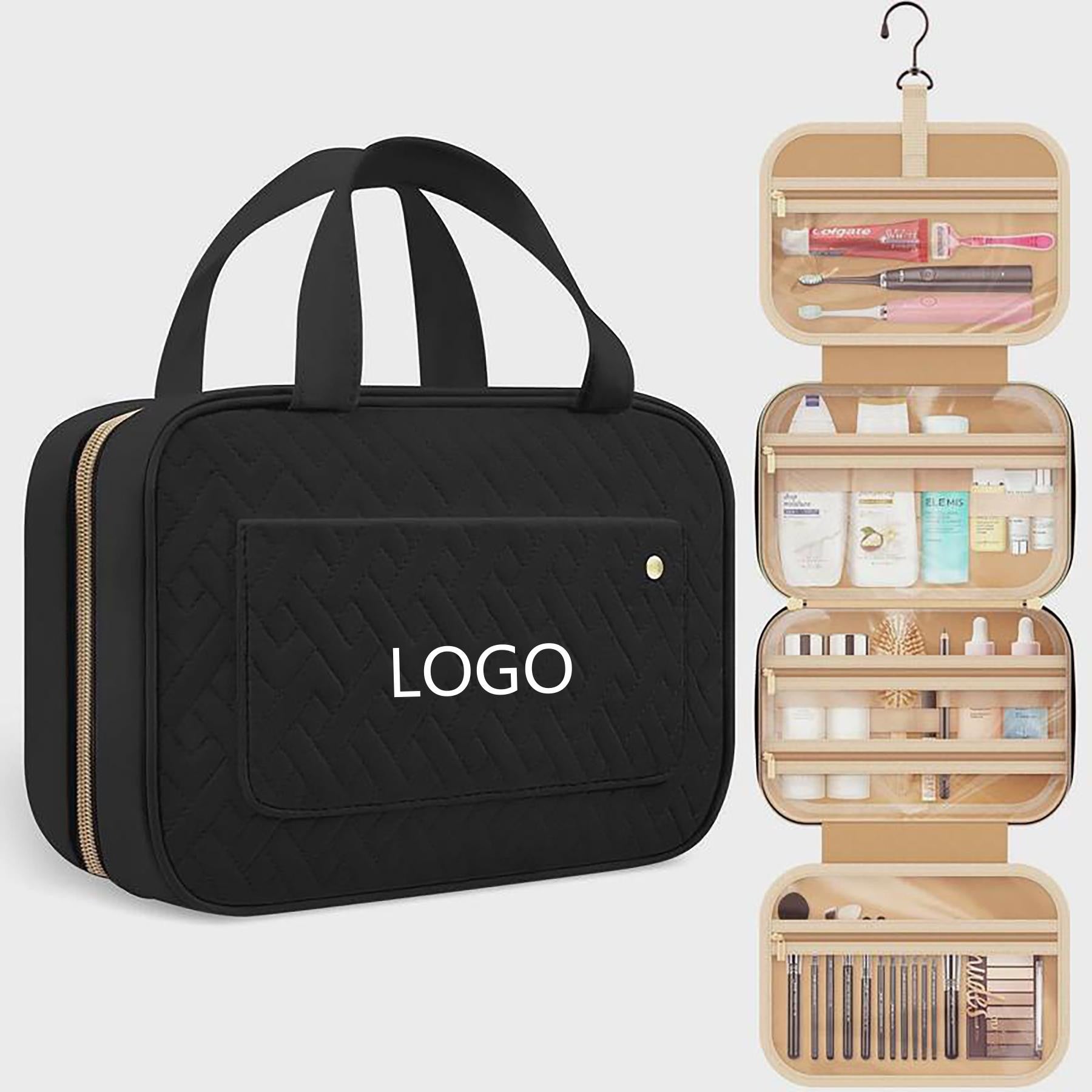 Organize all your essential toiletries with ease using our versatile travel makeup bag. This durable bag features multiple compartments and pockets, perfect for storing everything from hair products to cosmetics to dental accessories. The main interior pocket includes an elastic band to keep bottles upright, while the top handle ensures easy carrying. Our waterproof design provides peace of mind for any trip, while the extra padding protects your precious items. The 360-degree swivel hook allows you to hang the bag wherever you need, making it ideal for overnight stays, weekend getaways, cruises, or international flights. And with clear pockets for easy visibility, you’ll be able to find what you need at a glance. Stay organized and stylish on the go with our travel cosmetic organizer. 4.33″ L x 1.32″ W x 3.05″ H