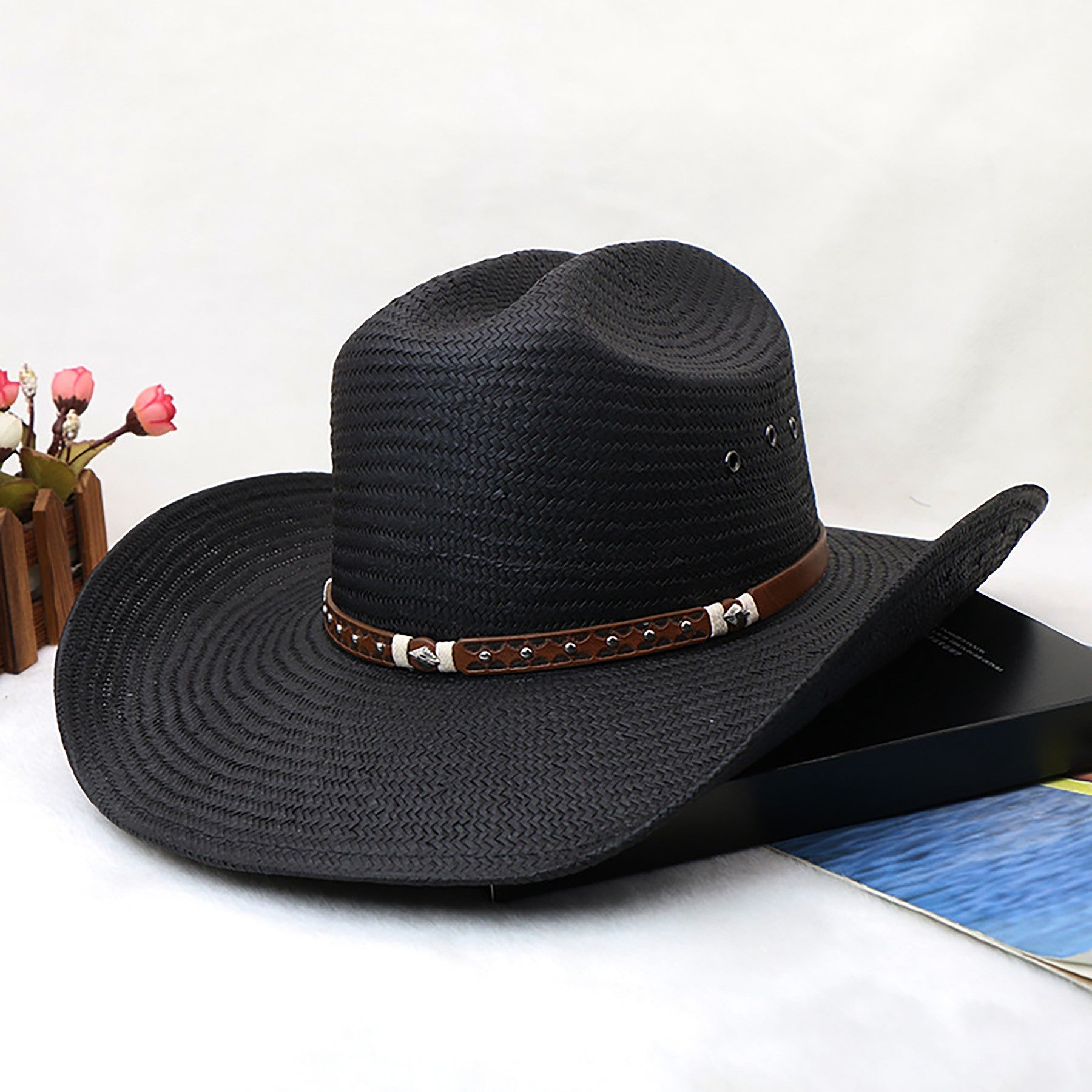Our cowboy hats offer a plethora of benefits that make them stand out from the rest. Not only are they incredibly lightweight, soft, and comfortable, but they also provide excellent breathability. Crafted from durable and flexible materials, our hats offer a snug yet comfortable fit for most head sizes. The sweat-resistant elastic bands and upgraded breathable materials ensure optimal air circulation and moisture-wicking, keeping your head cool and dry even in the harshest sunlight. The wide crown and brim of the hat provide ample ventilation and comfort on hot days, while the soft and absorbent sweatband inside helps reduce sweat accumulation. Perfect for outdoor activities like horseback riding, hiking, camping, and more, our cowboy hats are a must-have accessory for anyone looking for both style and functionality. 16.54″ L x 14.37″ W x 6.3″ H
