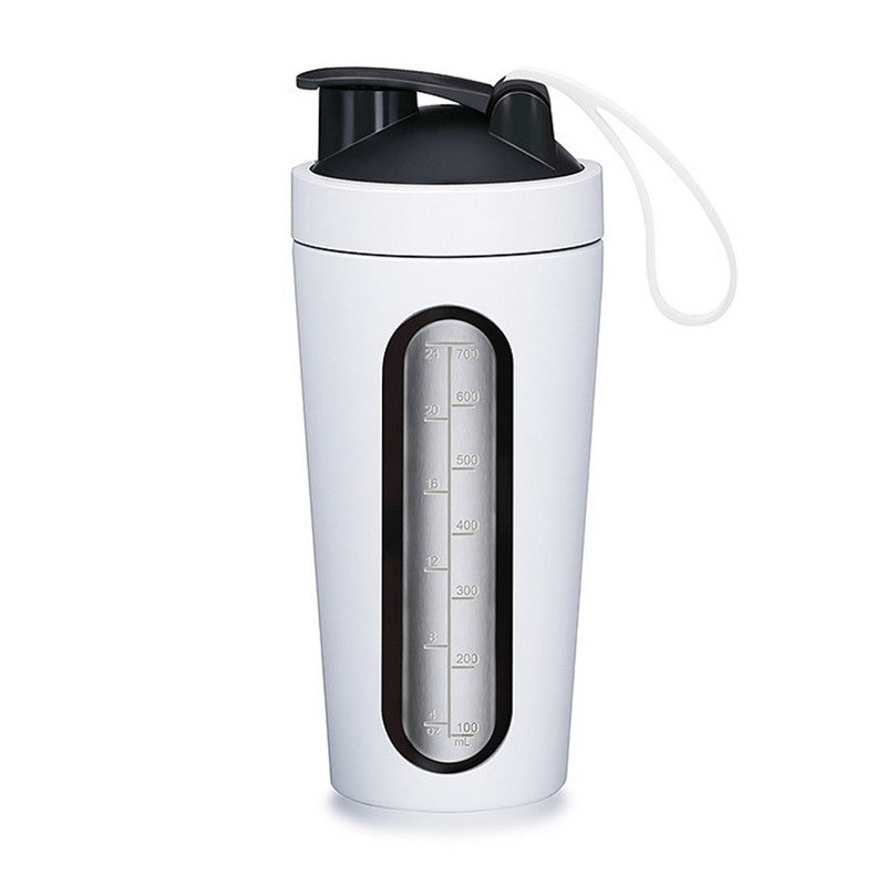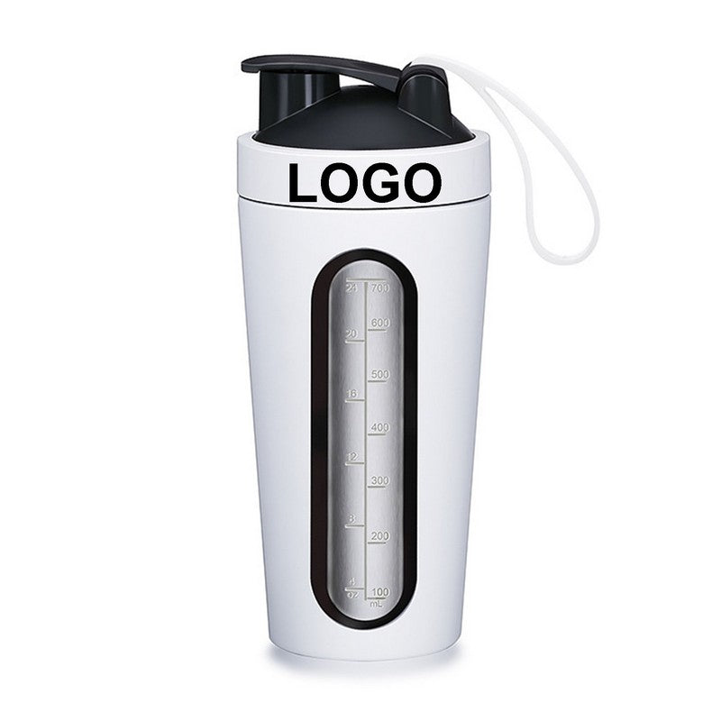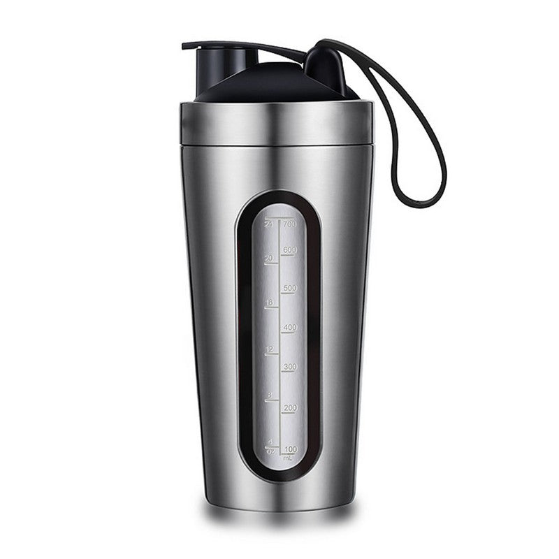 Metal body with visible window, blending with blender balls for replenishment and smoothies. Leak-proof clamp-on cover with silicone seal and metal ring. Easy to open and carry with flexible handle. Precision-sized triphenylmethane material, 23.6 ounces, perfect for mixing milk, coffee, or juice at the gym. Great gift for friends and family. 8.66′ L x 3.54′ W x 3.54′ H