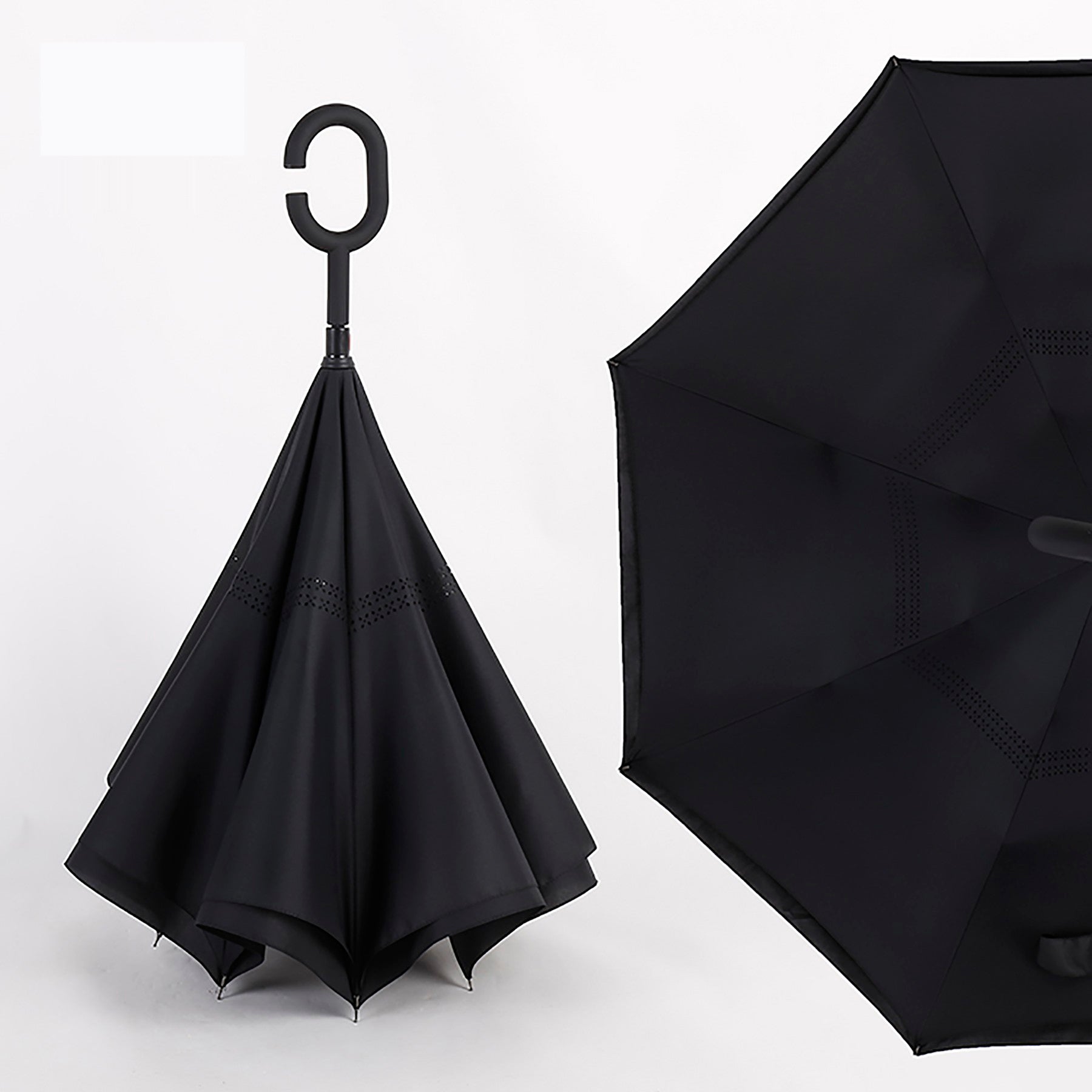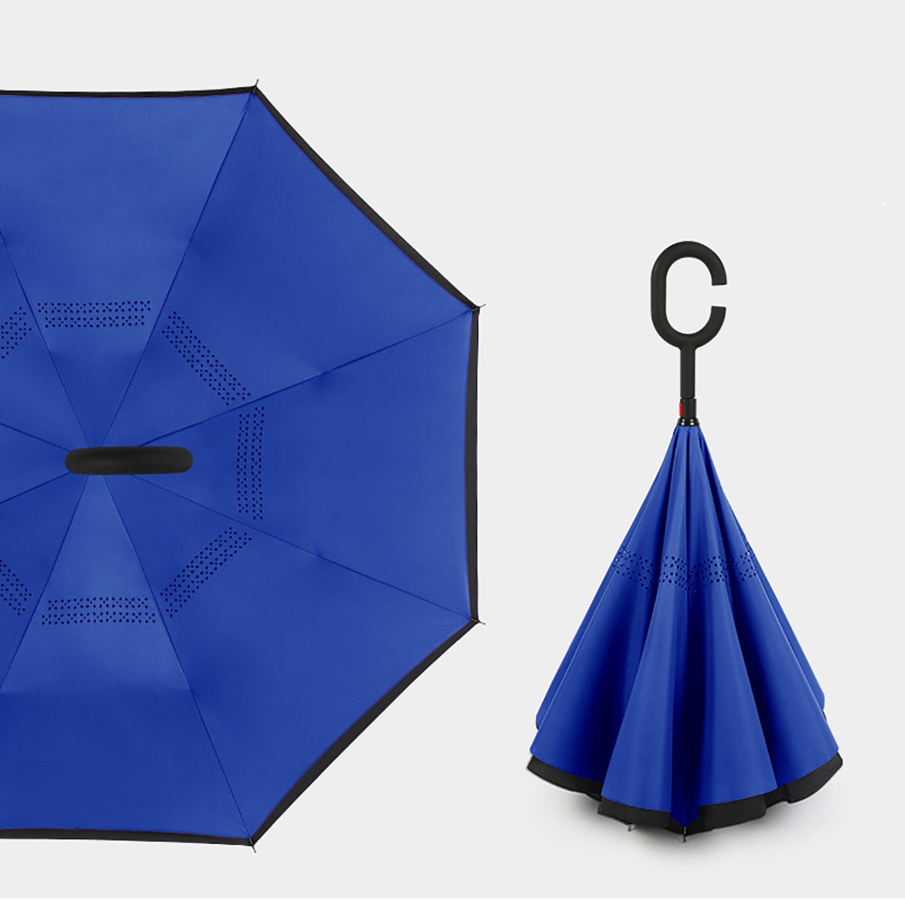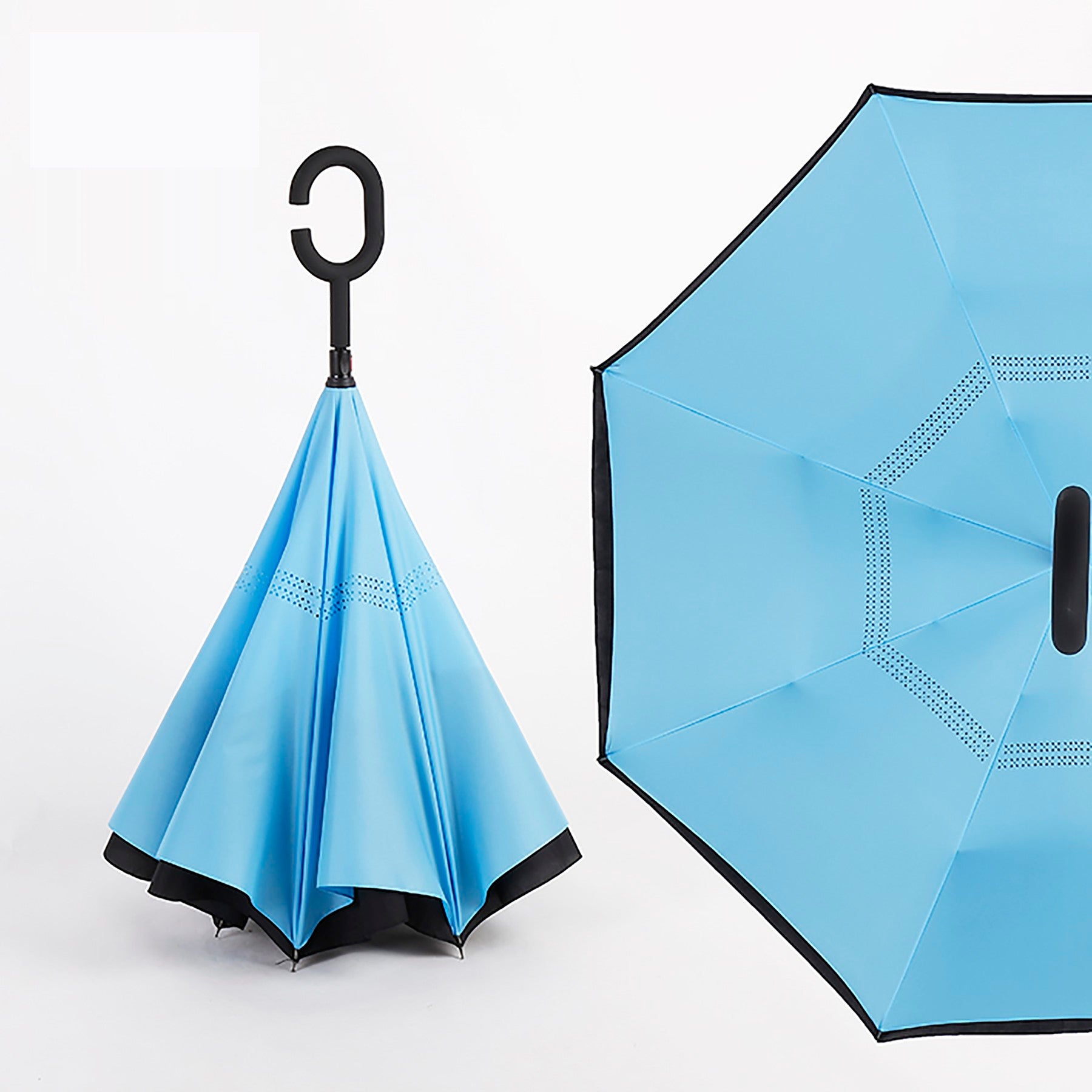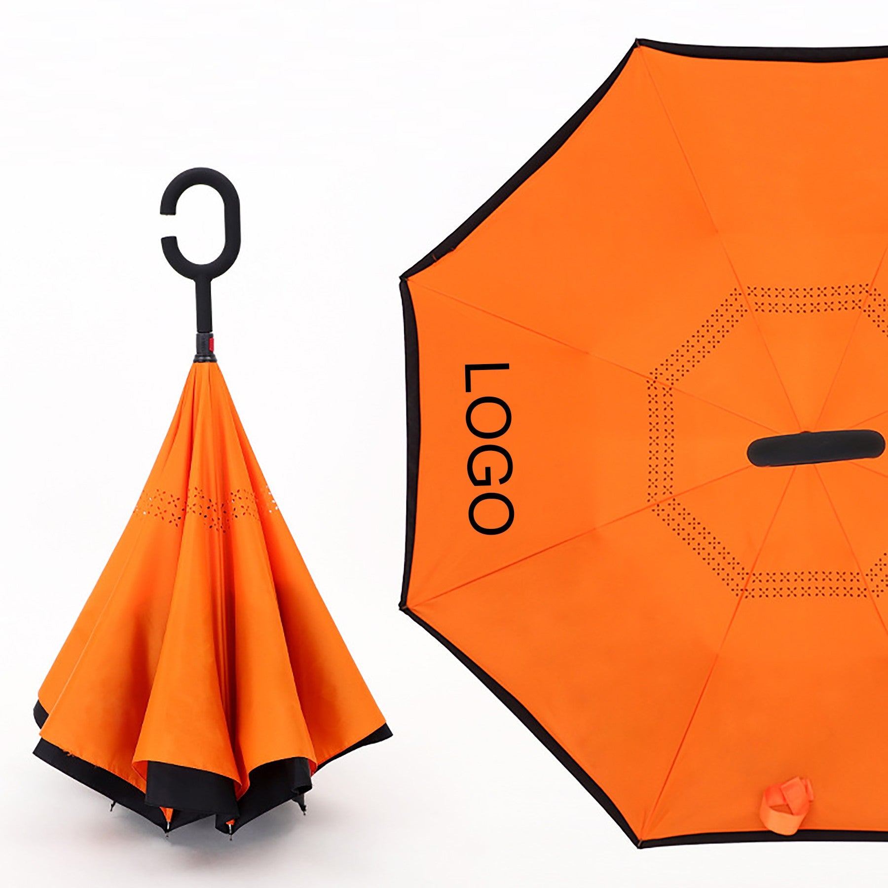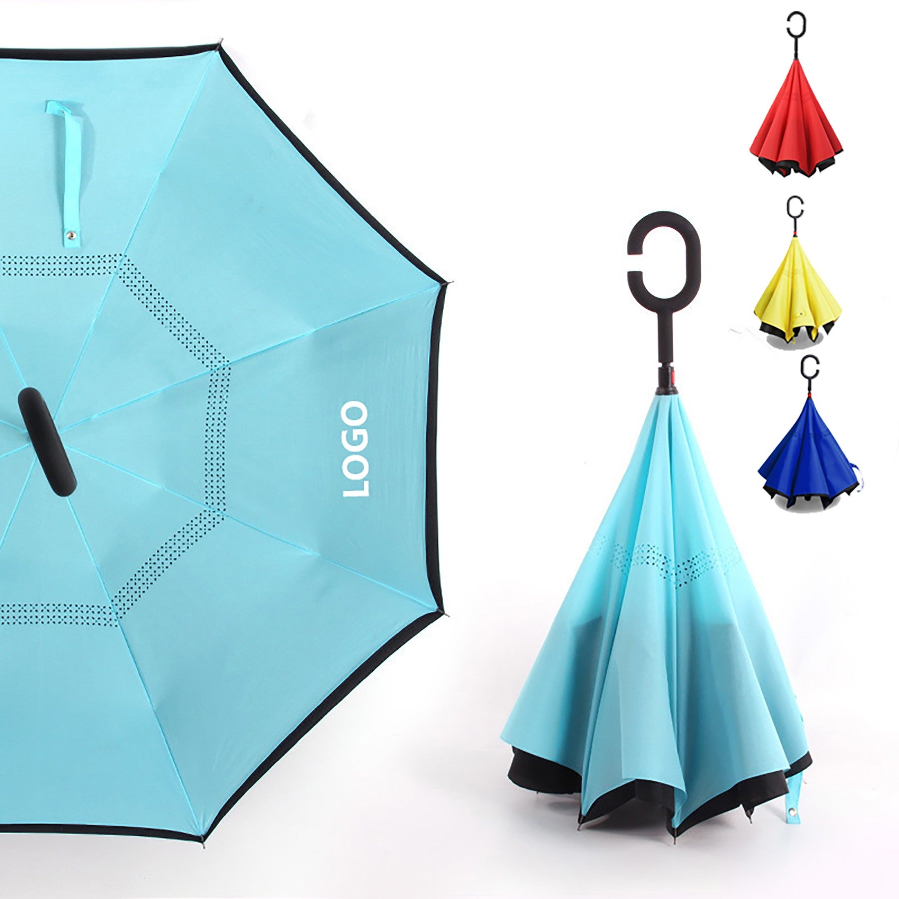 Shield your skin from harmful sun rays with our premium high-density impact cloth umbrella. Crafted to be moisture-proof, moldable, and able to maintain its shape, this umbrella is a durable companion for any outdoor adventure. The reinforced umbrella bar ensures sturdiness, even in the face of strong storms. Perfect for everyday use or for golfers, this type C automobile reverse umbrella can also be customized with logos to add a personal touch. Experience superior sun protection and style with our versatile umbrella. 31.89″ L x 42.13″ W