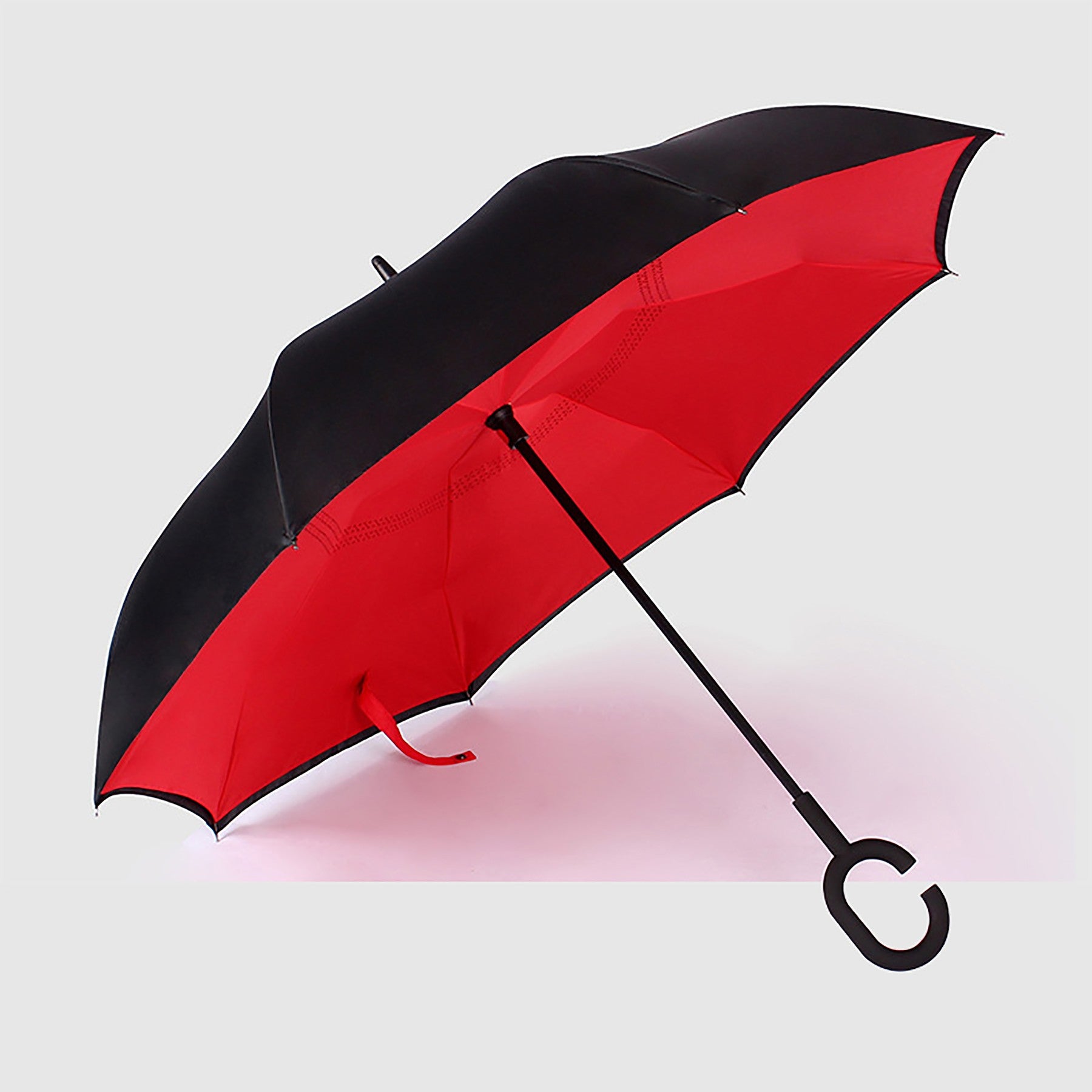 Made from lightweight and waterproof pongee fabric, this umbrella features a breathable double layer canopy and a sleek top. The high-quality stainless steel frame provides stability in strong winds. With a unique reverse folding design, it can be opened effortlessly while keeping you dry. The C-shaped handle allows for hands-use. Stay dry and stylish with this innovative umbrella. 41.3′ L x 29.5′ W