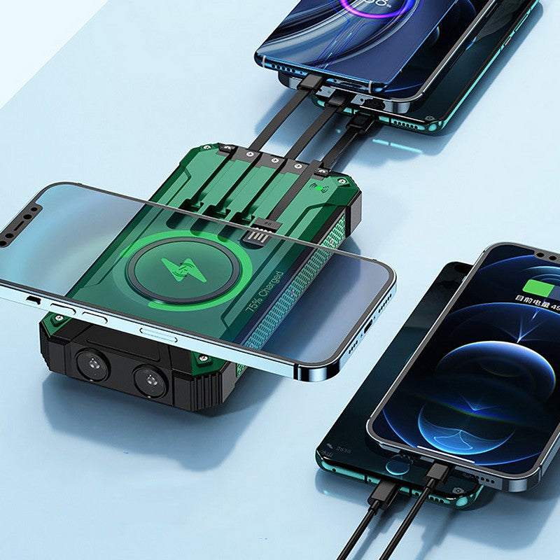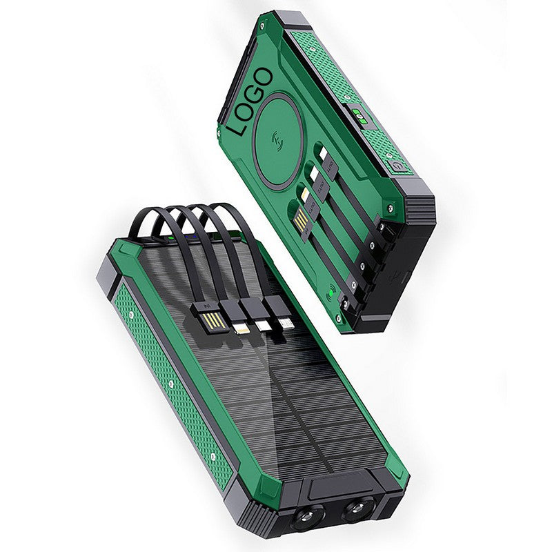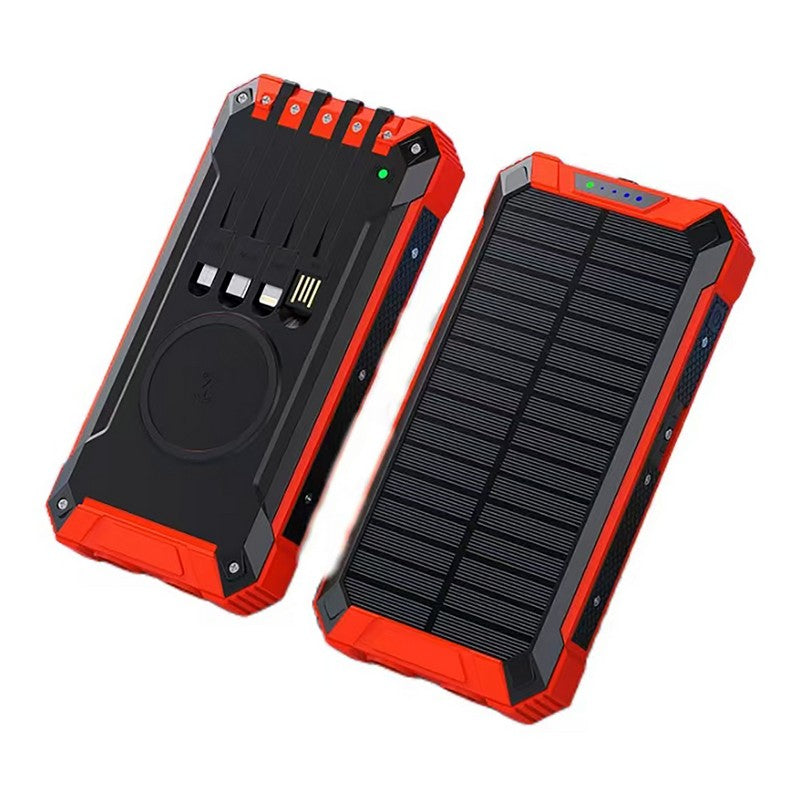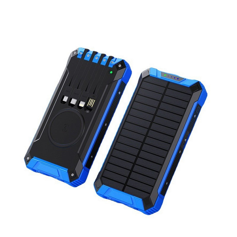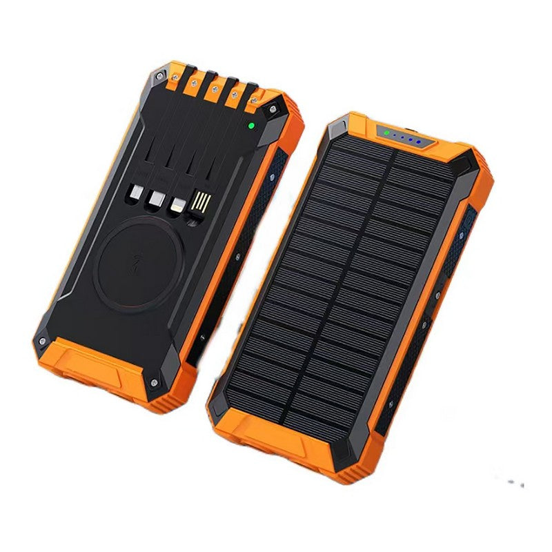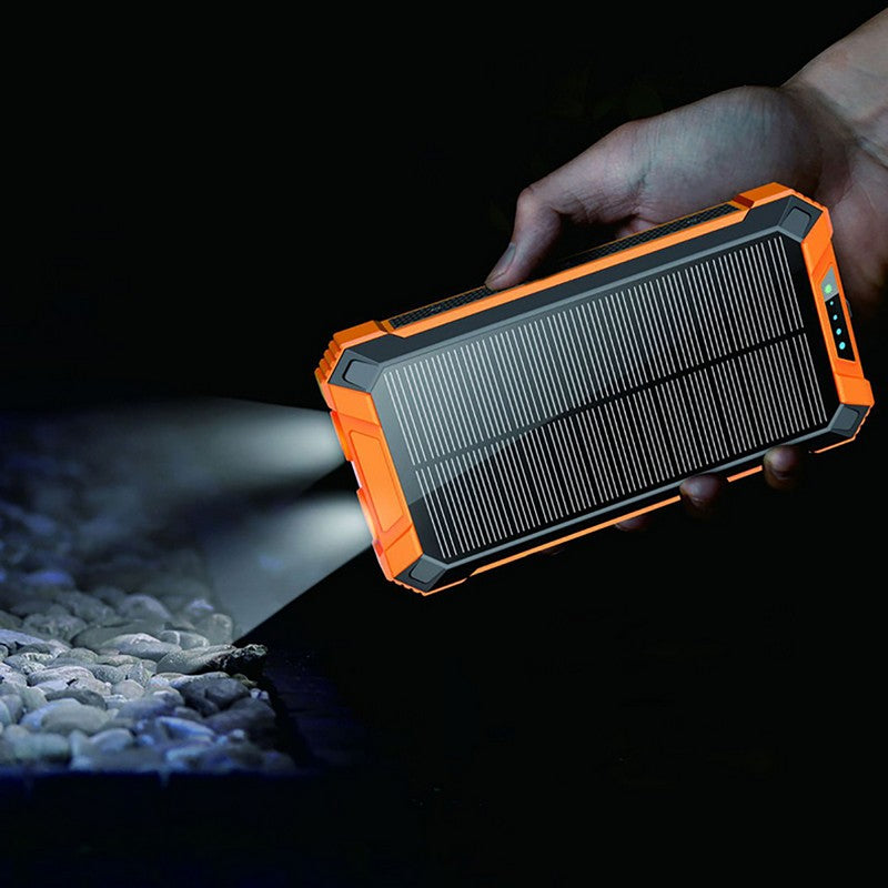 This 20000mAh solar phone charger offers 18W wired and 5W wireless fast charging. It automatically selects the best charging speed for your device, reducing charging time. It also features a three-mode light for emergencies, contains an SOS flashlight and strobe light. The charger comes with an auxiliary compass kit, making it a handy tool for outdoor sports enthusiasts and emergencies like power outages during natural disasters. 6.81′ L x 3.5′ W x 1.14′ H