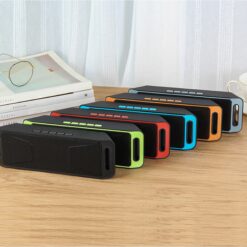 Elevate your music experience with our portable wireless speaker featuring full-range drivers and robust bass for exceptional sound quality. Its compact design makes it perfect for on-the-go use. Enjoy seamless connectivity, wireless calls, FM radio, and memory card playback for endless entertainment options. Ideal for home or on adventures, our stylish speaker is the ultimate audio companion. 8 1/16″ L x 1 11/16″ W x 2 1/2″ H