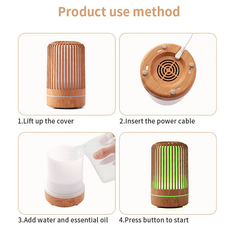 This ultrasonic essential oil diffuser is an amazing multifunction aromatherapy device unlike any other you’ve ever used. Its material is PP and plastic. It can be used for 3-6 hours. It features a large and easy to clean 5oz water tank, 7 different LED light colors, multiple mist nebulizer modes, as well as a safety auto-switch that prevents it from overheating in case it runs out of water. 3.74′ L x 3.74′ W x 6.34′ H