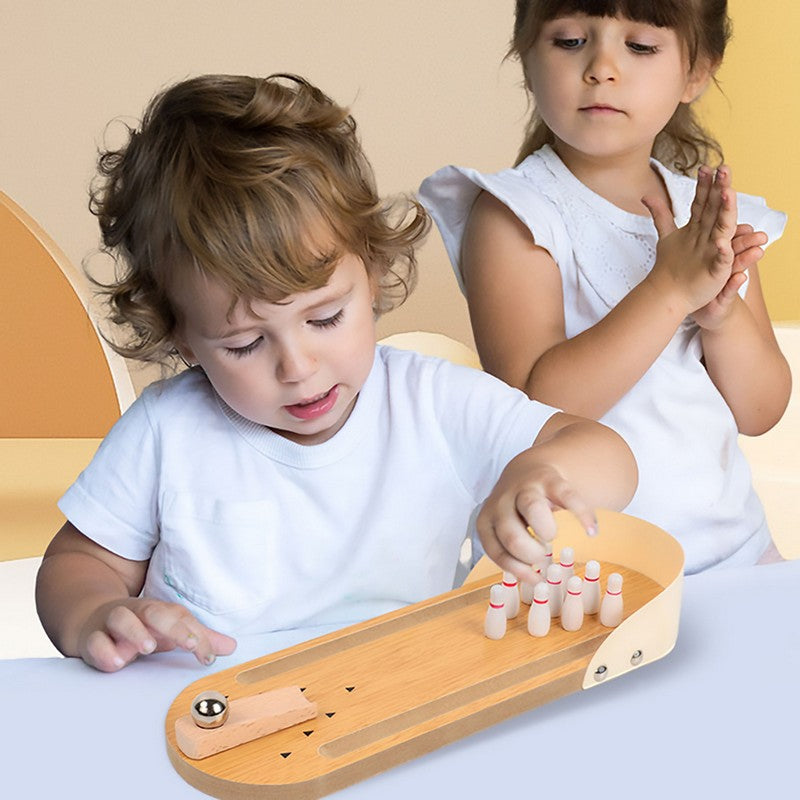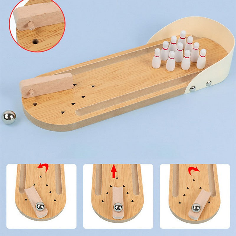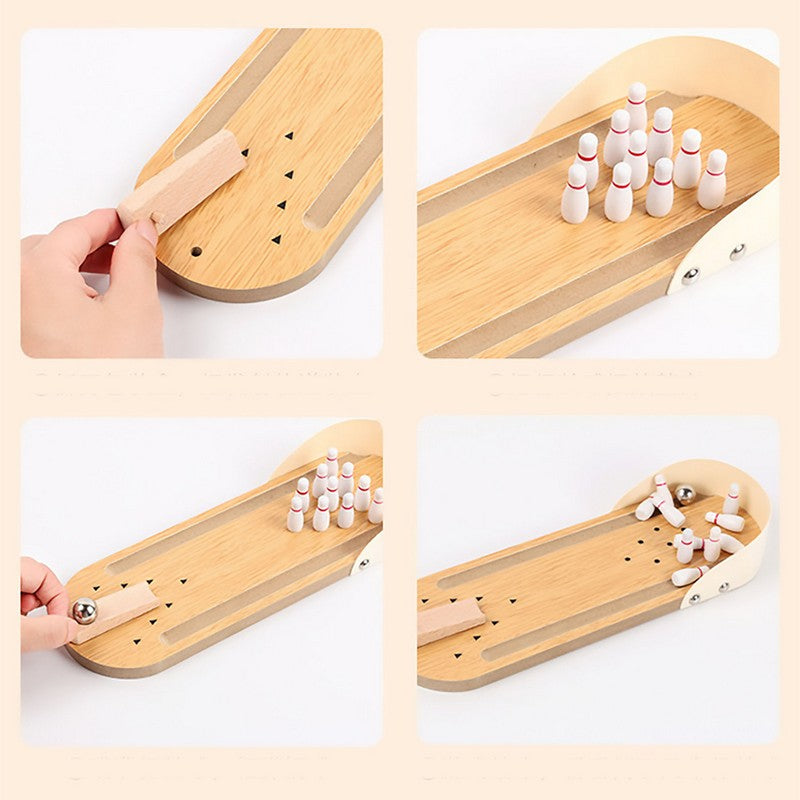 Wooden Tabletop Bowling Game Desk Toy