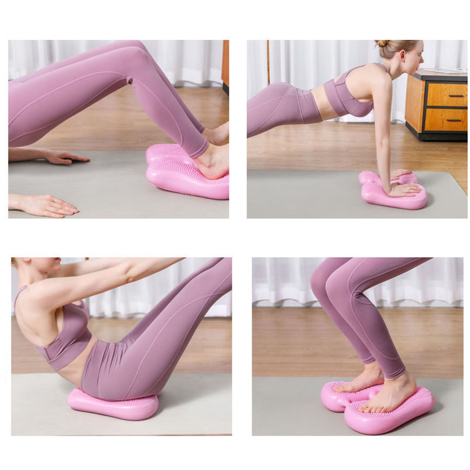 This wobble seat improves core strength through various exercises like push-ups, squats, Pilates and yoga. It enhances knee stability, balance and blood circulation.Sitting on it strengthens core muscles, relieves neck and back pain and boosts focus and aerobic workout. Our inflatable balance exercisers are lightweight, easy to assemble and beneficial for overall fitness. 13″ L x 14 5/8″ W x 2 6/8″ H