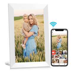 This 10.1-inch digital photo frame has a 1280*800 resolution IPS touchscreen for clear visuals from any angle. It supports various image and video formats and automatically rotates photos. The removable stand allows for portrait or landscape viewing. Easy setup and intuitive touch screen. A thoughtful gift for various occasions. 10.35′ L x 7.17′ W x 7.17′ H