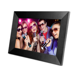 The screen provides superior viewing from all angles. Our products are packaged in an elegant box, ideal for gifting. This digital photo frame a unique image preview feature for easy selection. It adjusts to portrait or landscape automatically and allows for remote file deletion. The frame can play photos in sequence or randomly with slideshow effects, and you can customize settings like timing and transitions. Discover extra features such as an alarm clock, calendar, picture zoom, and more. 10.43′ L x 7.24′ W x 7.24′ H