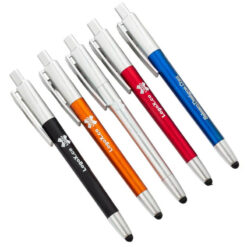 Quantity: 200 500 1,000 5,000 20,000 Your Price (each): $1.90 $1.58 $1.42 $1.24 $0.99 Impress event attendees with our sleek and customizable ballpoint pen! It has a vibrant colored barrel, user-friendly press button design, and a polished aluminum finish. Perfect for conferences, trade expos, seminars, job fairs, and more! Personalize with your logo for a memorable giveaway. 5.6′ L