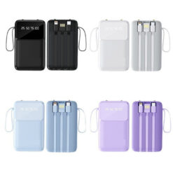 This portable power bank is available in 5000, 10000, and 20000mAh capacities, supporting use in office, travel, or outdoor settings. It reduces the need for multiple cables and adapters, streamlining the charging experience. Integrated voltage adjustment adapts power delivery to connected devices, contributing to efficient and secure charging. For supported devices, even short charging intervals can restore useful power levels. Designed with a compact and lightweight form, comparable in size to a smartphone, it fits comfortably in pockets, handbags, or backpacks. A carrying strap enables attachment to a bag, offering convenient hands-off portability and easy access while you are out. 4.09′ L x 2.48′ W x 1.06′ H