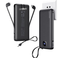 You can leave behind extra charging cables, reducing clutter in your backpack. This portable battery charger has built-in iOS and USB C cables, as well as two USB A outputs and a USB C charging cable. It can charge up to 5 devices simultaneously and only takes 4 hours to fully charge with a PD18W charger, saving you time. 3.46′ L x 3.15′ W x 3.15′ H