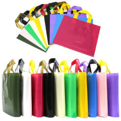 Quantity: 250 500 1,500 2,500 10,000 Your Price (each): $0.57 $0.53 $0.48 $0.42 $0.34 Made from durable polyethylene plastic with a reinforced handle, these soft loop bags are perfect for retail, T-shirt, clothing, and pastry shops. They are reusable and built to last, with a large imprint area for your logo and artwork to stand out. Available in various colors to make a bold statement with your branding. 13 3/4′ L x 3 15/16′ W x 10′ H