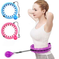 This durable smart exercise hoop is made of hard ABS plastic to prevent aging and has a 360-degree shock-absorbing massage ring for comfortable exercise and lower back pain relief. It is easy to use, adjustable for waistlines 31″ – 47″, and great for beginners. The upgraded 360-degree silent rollers ensure smooth and quiet rotation. 17 3/8″ L x 12 5/8″ W x 3 2/8″ H