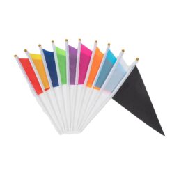 Made with tear-resistant polyester and a safe, dome-shaped plastic flagpole. Vibrant colors and patterns on both sides symbolize diversity and inclusion. An ideal decoration for parties, parades, and similar events. An excellent choice for distribution during activities. Suitable for various settings like backyards and offices. 5.51″ L x 8.27″ W