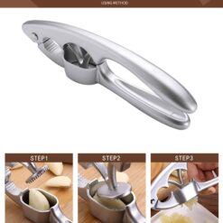 Enhance your kitchen experience with our premium garlic press featuring an ergonomic design and a high-quality chrome plated aluminum alloy Nutcracker for maximum safety. Whether you’re a dedicated housewife or a passionate kitchen enthusiast, this versatile tool is perfect for crushing garlic, nuts, seafood, and more. Its sleek and fashionable design not only adds a touch of elegance to your kitchen but also makes it ideal for use in restaurants, picnics, and at home. Upgrade your culinary skills with this essential kitchen gadget that combines style and functionality effortlessly. 7″ L x 1.8″ W