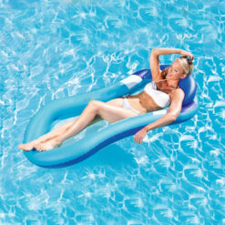 This pool floating chair offers comfort and support for a relaxing holiday. With quick inflation/deflation for easy storage, its ergonomic design keeps you semi-submerged, staying cool and refreshed as you float away your cares. 30 3/4″ L x 43 1/4″ W x 5 7/8″ H
