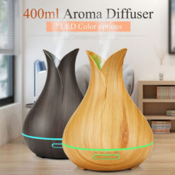 Improve your space with our Ultrasonic Essential Oil Diffuser. It provides soothing scents and adds humidity using advanced technology to create a fine mist. The 400 ml tank runs for up to 10 hours, covering up to 40 square meters. It features seven LED light colors to match your mood. Safe and energy-efficient, it’s easy to use with tap or distilled water. The diffuser comes with a power adapter and water cup, all nicely packaged for gifting. Enjoy the calming effects of our diffuser and boost your wellness! 9.44′ L x 6.61′ W