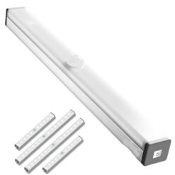 ABS and aluminum alloy LED body sensor lamps are equipped with light-sensitive body sensor lamps.In the dim environment, the Angle is 100 degrees, the distance is 100 degrees.It’s easy to use.Support USB direct charging, built-in polymer lithium battery.You can use it for four days on a single charge.The back of the product is built with strong magnet, easy to install and use.The induction lamp is available in white, warm and yellow, 500mm and 297mm, 210mm, 150mm, 100mm in five sizes to meet the needs of the home.It is a high quality choice for home life! 12 2/5′ L x 1 1/7′ W x 8/9′ H