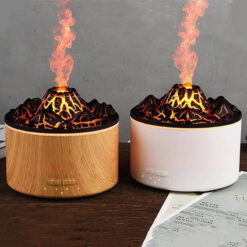 The volcano humidifier creates a peaceful ambiance with a soothing cool mist for relaxation. It a night light for better sleep quality. The portable design is perfect for travel, bedroom, and office use, moisturizing dry skin and reducing peeling. The ultra quiet operation at 25dB soothes mood, relieves stress, and improves sleep quality. It also has an auto shut off feature for safety when water is low. 3.46′ L x 3.46′ W x 3.46′ H